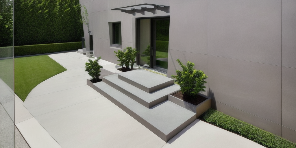 functionalism exterior shot tropical lush landscape south florida style locate the house in a typical florida neighborhood on a beautiful sunny day white tan stone color texture show trees in the background typical 3 tab shingle roof architecture