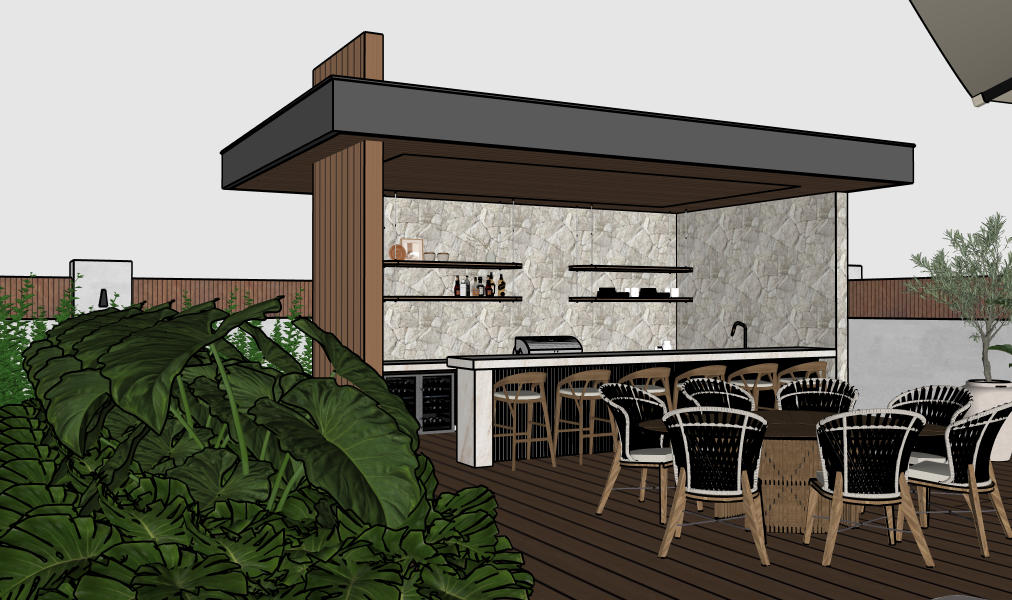 mantenha as texturas originais adicione paisagismo no fundo bem distante apos o muro de divisa com arvores grandes as arvores devem estar do outro lado do muro nao dentro do terreno principal