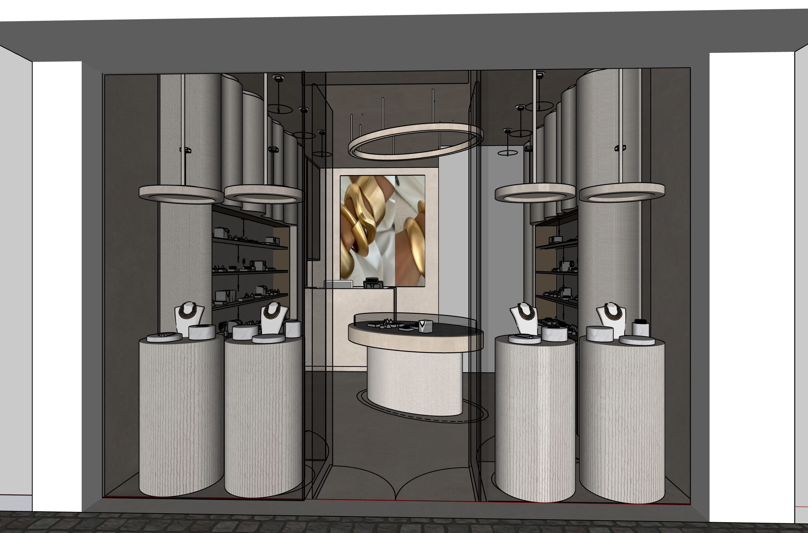 a jewellery shop in warm natural colors with natural materials