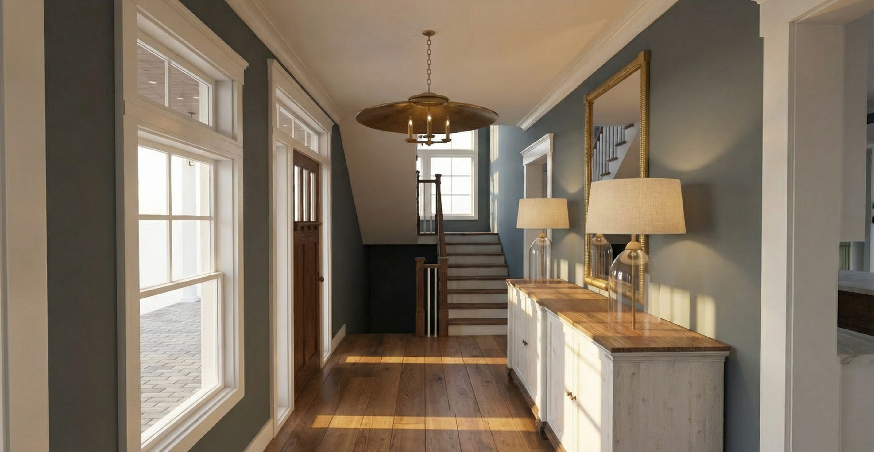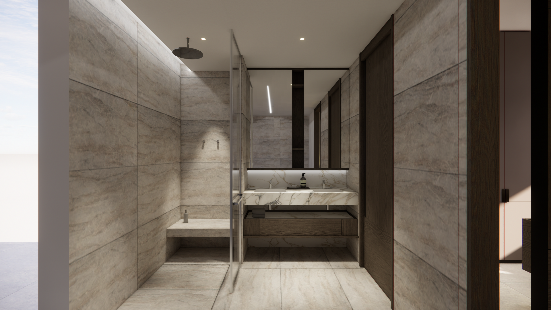 match the exact viewpoint and keep the design unchanged no modifications to furniture forms fa ade openings or layout preserve original color temperature and tone exactly upgrade realism only physically correct lighting clean indirect bounce realistic shadow softness improved material depth wood grain paint texture metal roughness accurate glass transparency and reflections subtle ambient occlusion natural highlights realistic surface imperfections very subtle keep everything architecturally consistent and professional like a studio renderer finish