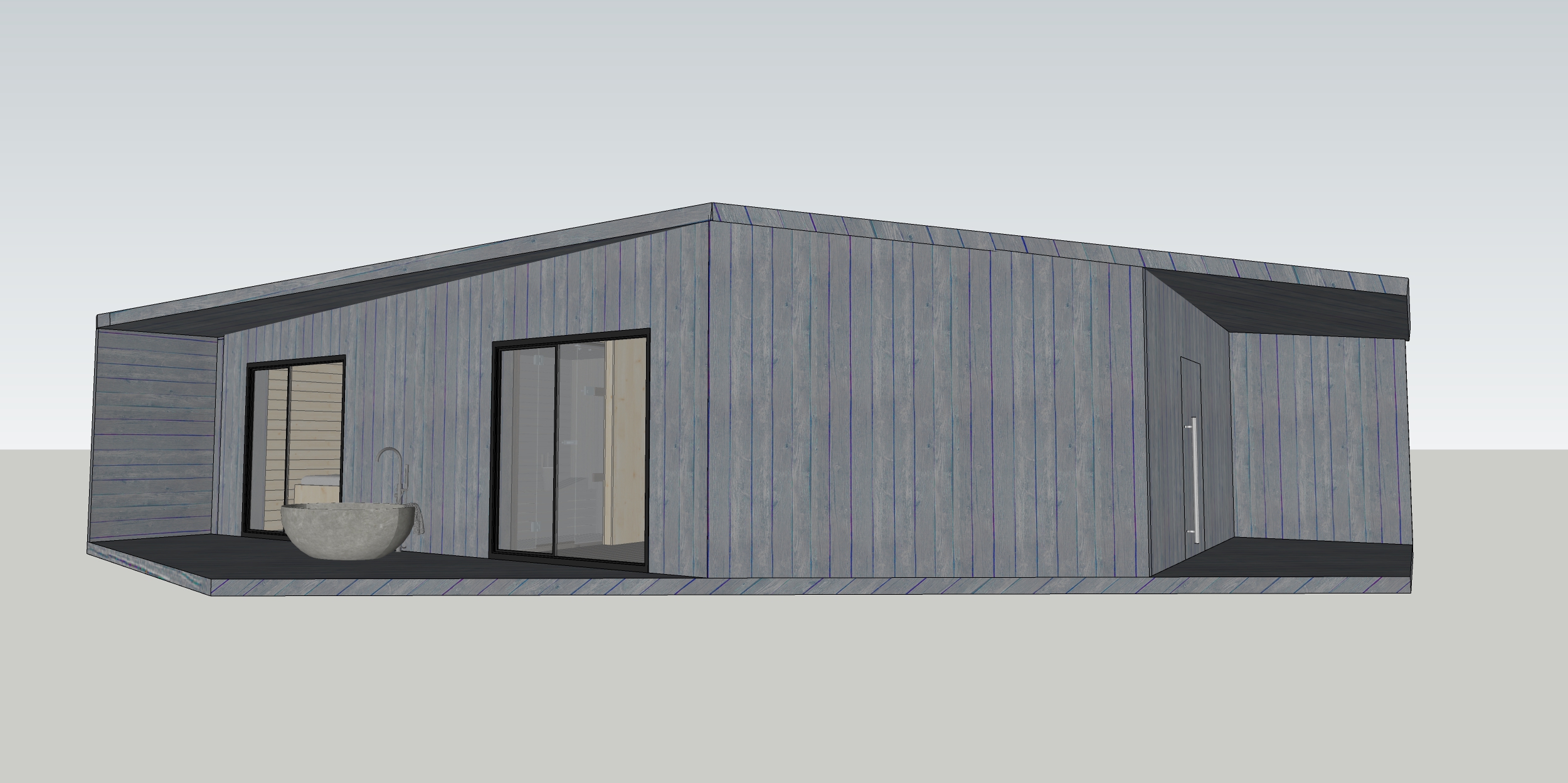 modernist exterior shot a beautifully rendered modern minimalist house set amidst a serene natural environment the house features wooden structures with a dark gray and black exterior large glass windows reflect the subtle hues of the surrounding landscape the wooden siding has warm earthy tones like soft browns and is combined with sleek contemporary black trimming the atmosphere is tranquil and the lighting is soft mimicking a gentle morning or late afternoon light the ground is adorned with patches of green moss and vivid yellow wildflowers adding a burst of color and life the surrounding trees are leafless drawn with delicate thin black lines indicating the late autumn season shadows of the trees create an intricate pattern on the house and the ground in varying shades of gray and brown the entire setting feels both modern and natural embracing simplicity and elegance architecture place these small cabins by a pond with the terrace directly connected to the water so it also serves as a wooden pier change the trees to have leaves it can be an autumn scene with warm colors the cabins should be made of dark charred wood shou sugi ban style with the planks appearing almost black natural peaceful atmosphere soft lighting reflections on the water cinematic composition
