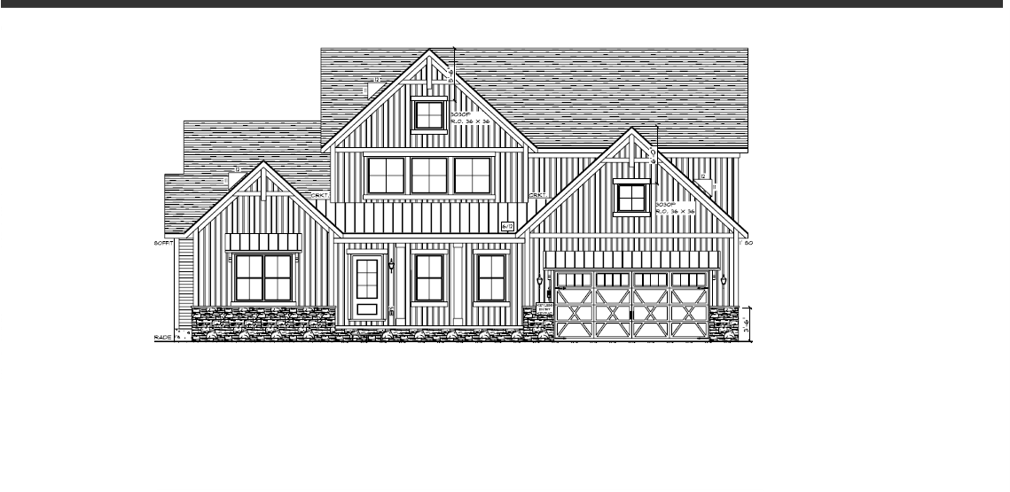 make as photorealistic as possible while keeping textures the same as selection professional landscaping in a lightly wooded scene with good lighting white siding black shingle roof black windows white garage door to match plan black front door