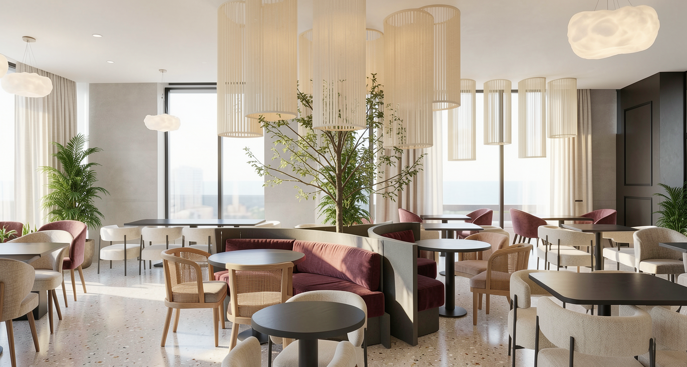 do not change the geometry or the 3d model in any way keep the exact same layout proportions and dimensions the goal is only to enhance the visualization to a photorealistic render improve material realism and lighting quality while preserving the original design add subtle realistic detailing to the shower doors e g refined hardware seals or delicate frame details without changing their shape or structure the glass should show realistic water droplets and or subtle reflections enhancing realism without altering transparency enhance the wall tile texture by increasing surface realism and micro detail the wall tiles are equipe tiles featuring a slightly uneven light reflective surface improve gloss variation and micro imperfections without altering the tile color or size the scene is illuminated by two spotlights and the wall sconce above the mirror is turned on emitting soft realistic light lighting should be natural and balanced with no overexposure the walls are off white and the white balance is neutral style modern clean photorealistic high quality render natural shadows correct exposure