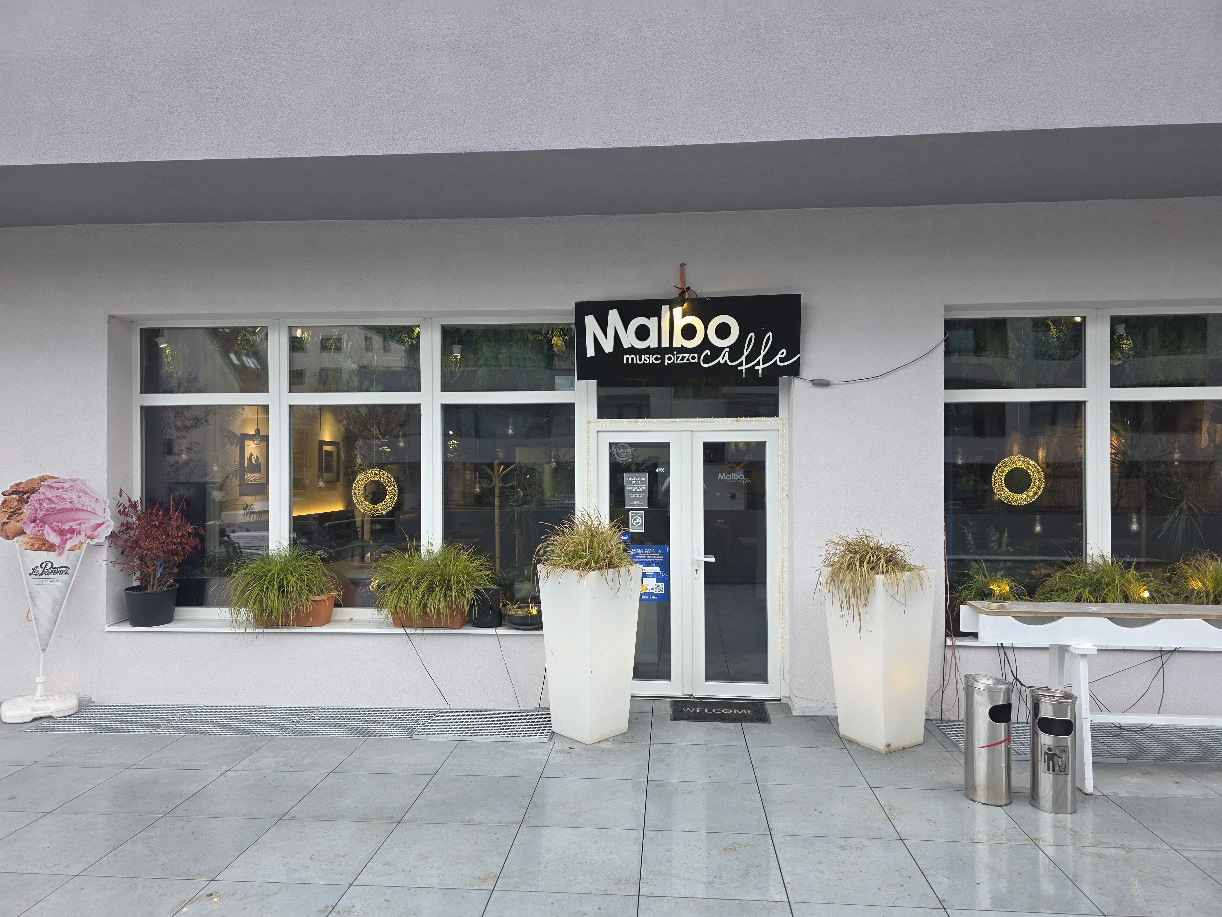 vytvor a vymysli exterierovu terasu so sedenim a rastlinami pouzivaj prirodne materialy drevo kov prestresenie nieco ako namorne plachty volne v stredomorskom style dizajnu rastliny nejake vysoke travy figovnik stromy v crepnikoch moderny nabytok na sedenie so stolmi uprav aj logo nad restauraciou moderny navrh loga podlahu ponechaj povodnu