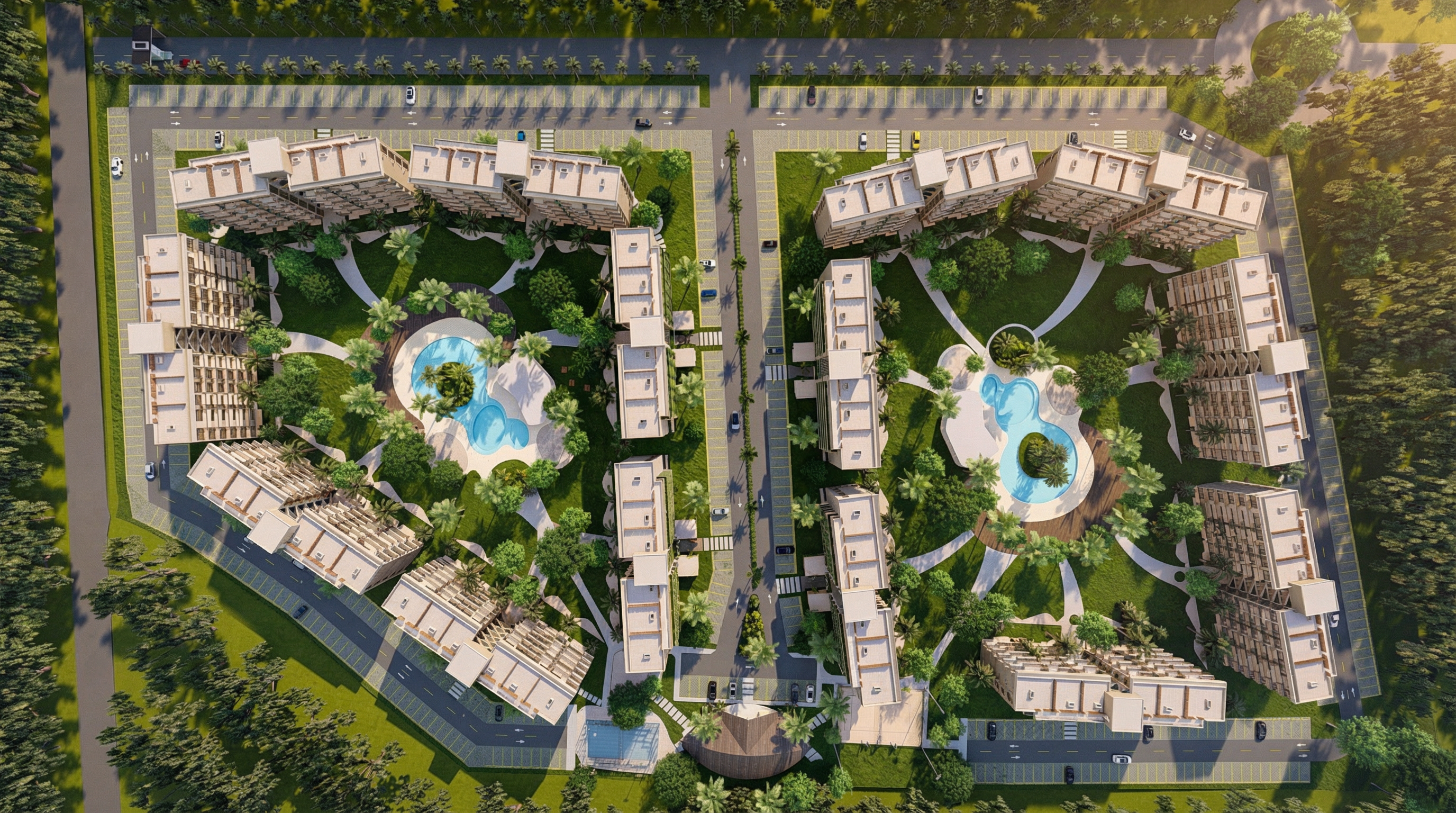 modern house in city houses around dark grey bricks light wood grass and trees around