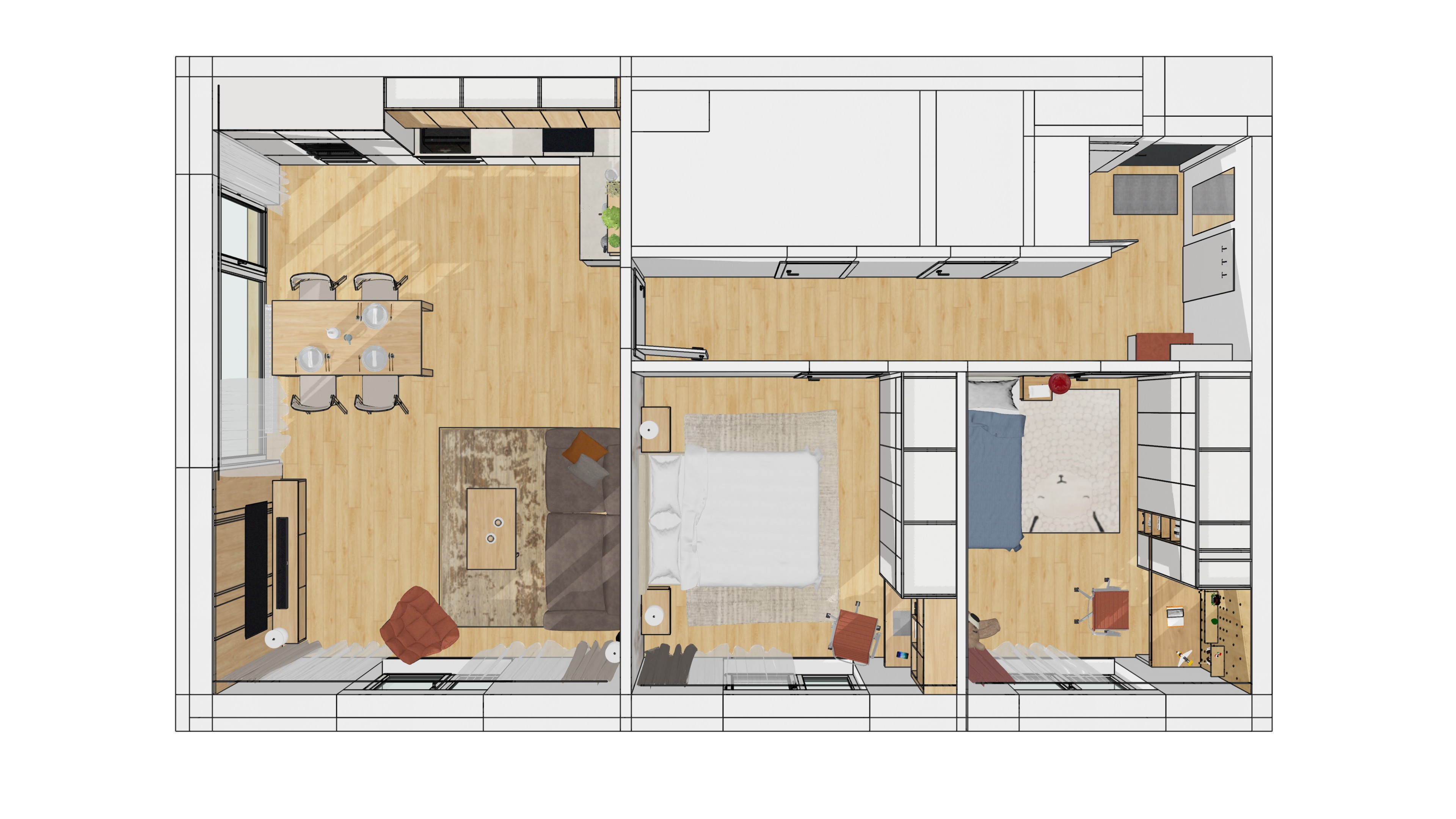 keep the same materials increase the details of the models but do not change the essence of the space improve the lighting conditions