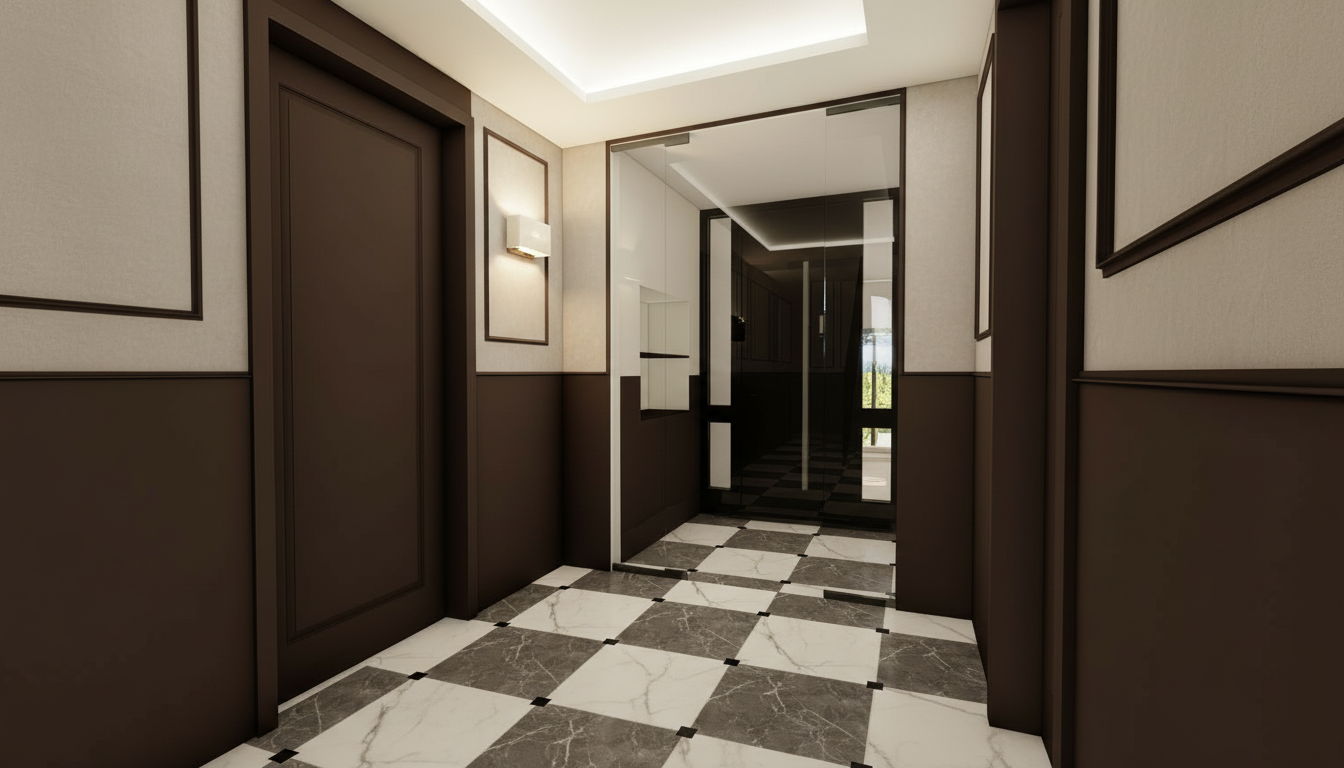 add a recessed extension to the garage on the right side of the image and add a single window in that extension