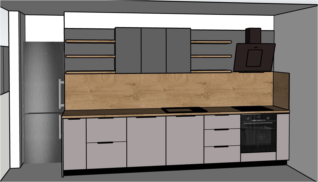wall cabinets are dark gray black sink ant tap put some accsesoiries on the shelves