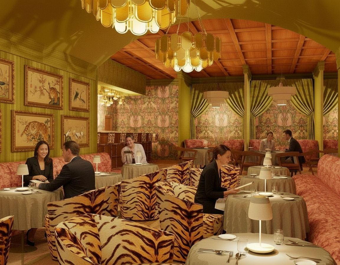 black roofing black timber cladding black window frames extensive native planting trees in background low timber deck lawns concrete paving sunset interior lights on