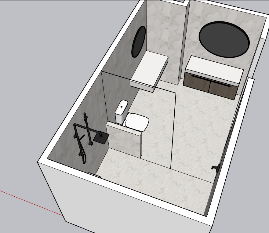 the floor and walls are a white marble with gold and grey veining please use the grout lines as show on the drawings the floor is a herringbone pattern