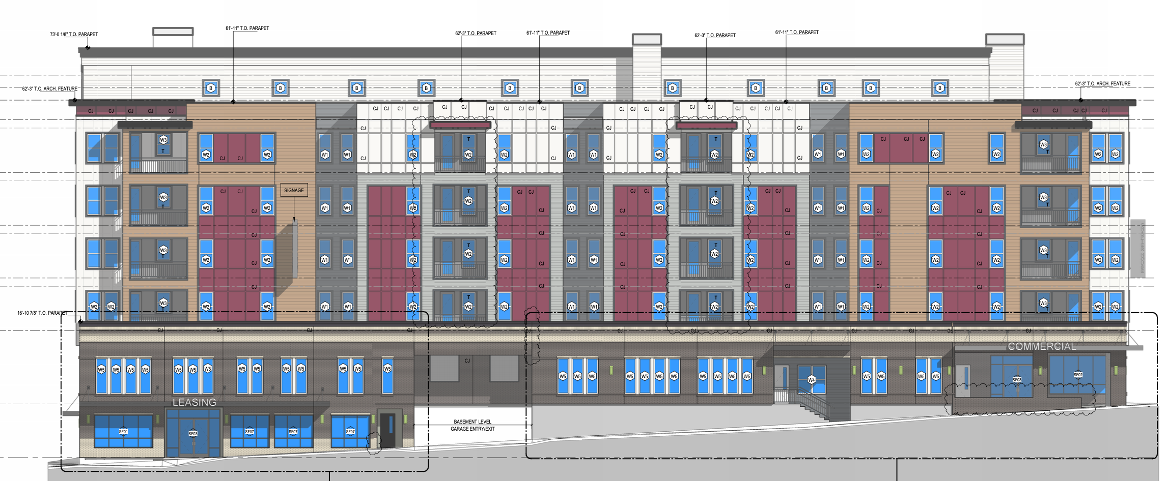 the lower brick areas are all black brick with a light brick decorative band above it the upper light brown areas are a faux wood siding