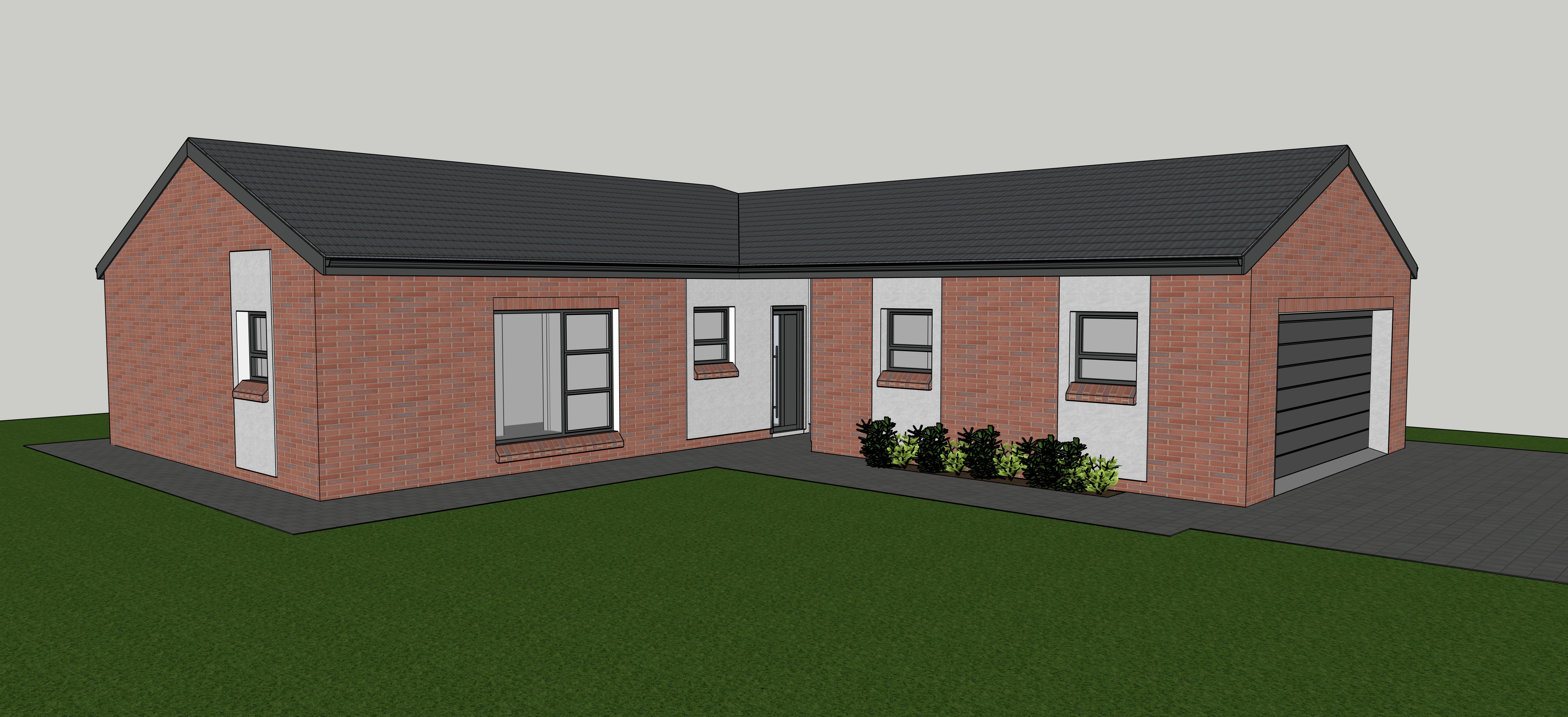a manicured lawn layered flower beds low maintenance shrubs native plants photo realistic add people in garden blue skies with some clouds light above garage door with on interior lights