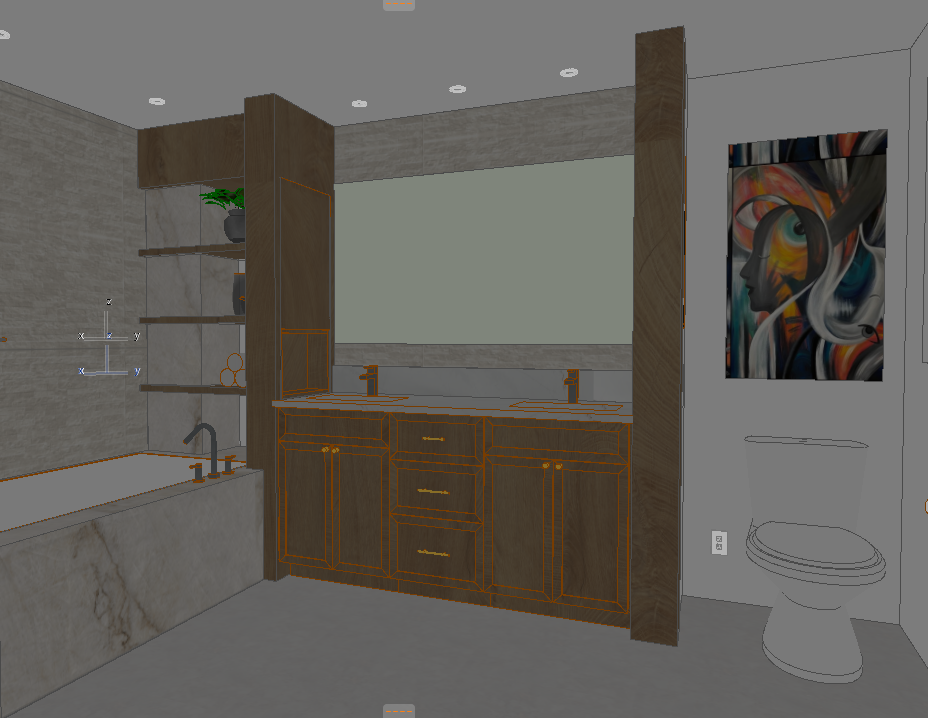 luxury ensuite bathroom interior spa like atmosphere serene and elegant with a dramatic mood warm soft wood cabinetry in natural oak tones alabaster color palette textured stone wall in soft alabaster behind floating vanity mirror and full tub surround backing no window dramatic calacatta gold white marble on tub apron front edge and vanity countertops with bold elegant veining soft cream floor tile with refined matte finish seamless integrated soaking tub oversized backlit mirror with soft ambient glow brushed champagne bronze fixtures layered warm lighting subtle recessed ceiling lights moody evening lighting cinematic shadows rich contrast organic modern styling plush white towels minimal styling accessories clean lines calming yet sophisticated composition natural daylight softly filtering through frosted window high end interior design photography magazine ready editorial composition ultra realistic highly detailed materials luxurious textures architectural digest style 8k render