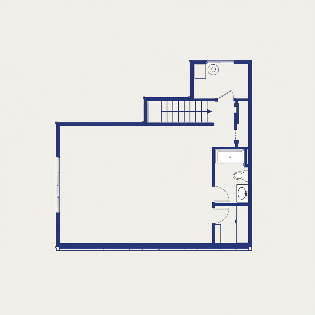 do not add any furniture or flooring do not add any sinks or anything to the closet at the top of the stairs keep the sliding closet doors keep this as a architectural blueprint very simple and clean do not change any of the floor plan or make any additions only change the black lines to a dark navy blue