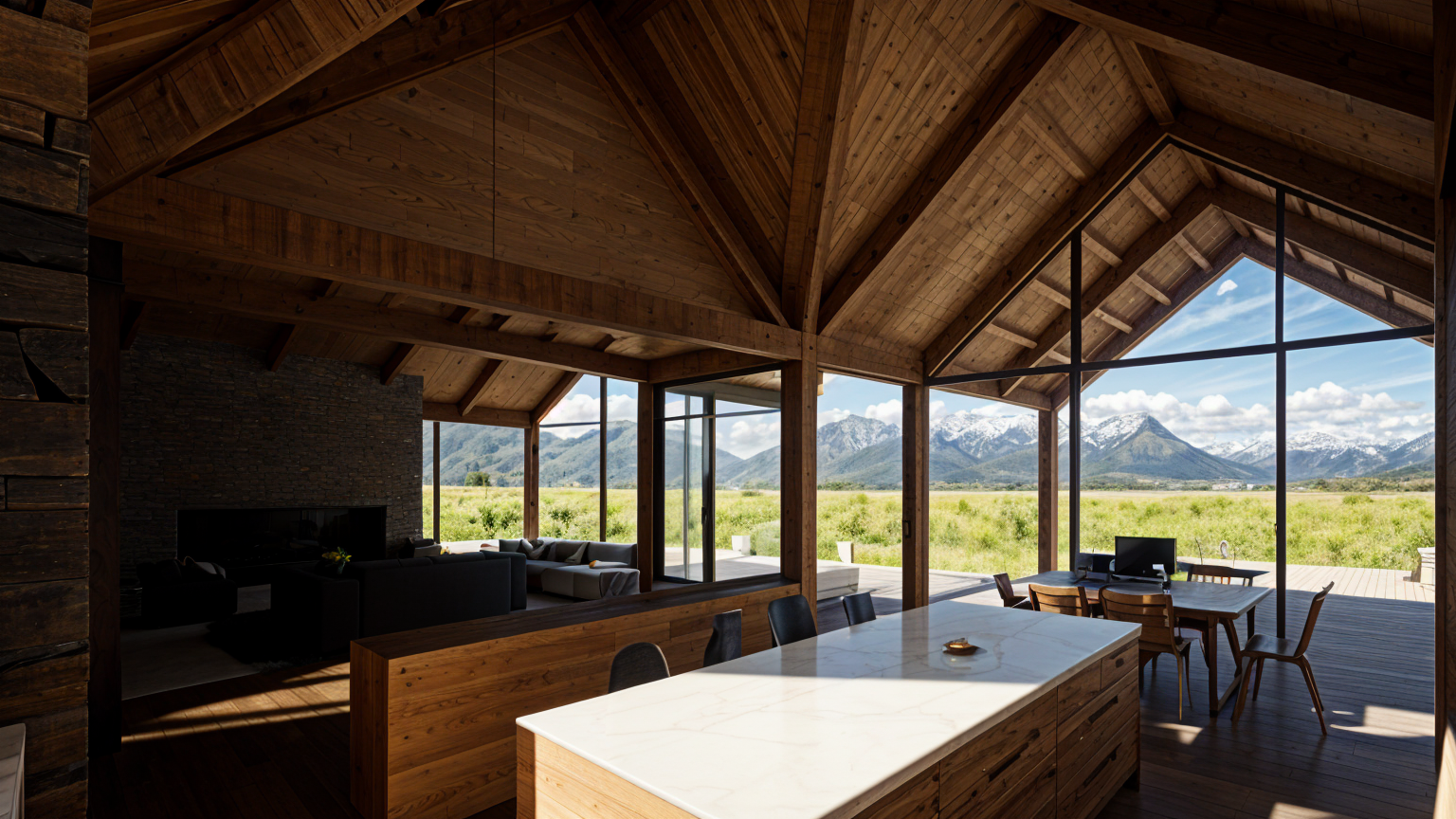 re render this kitchen changing up the cabinet layout and cabinet types mix and match cabinets for a modern luxury feel add luxury pendant lighting over the island luxury appliances luxury countertops and make everything feel masculine add a couple of trees and style the kitchen accordingly architecture