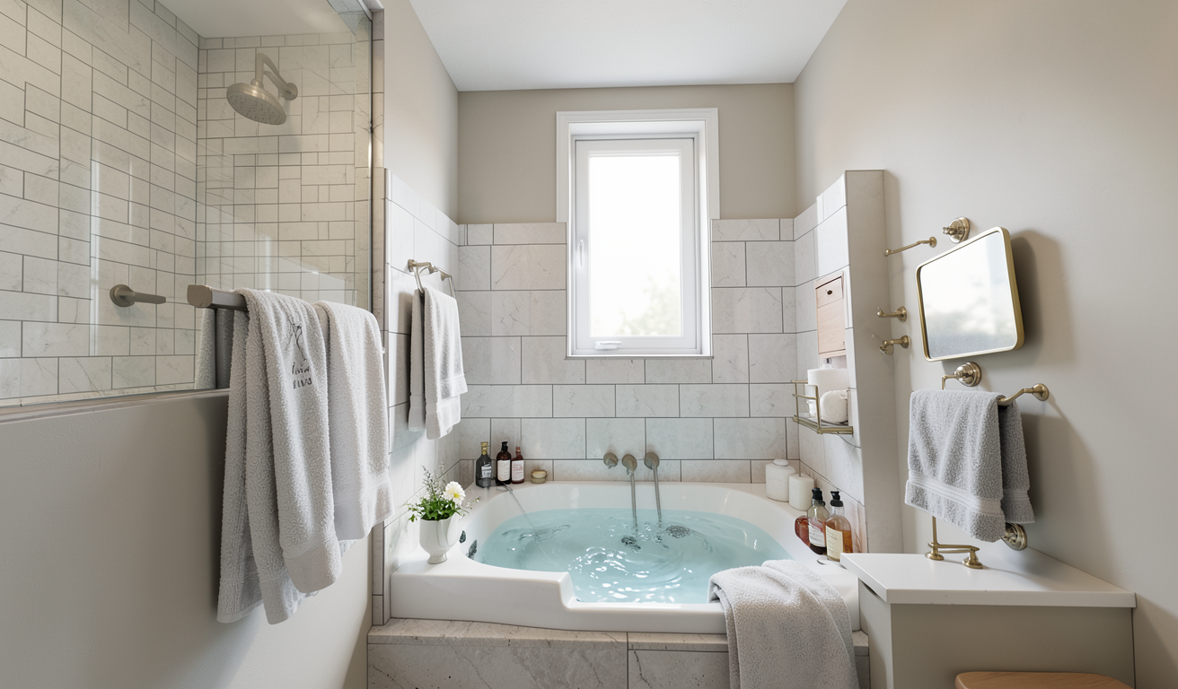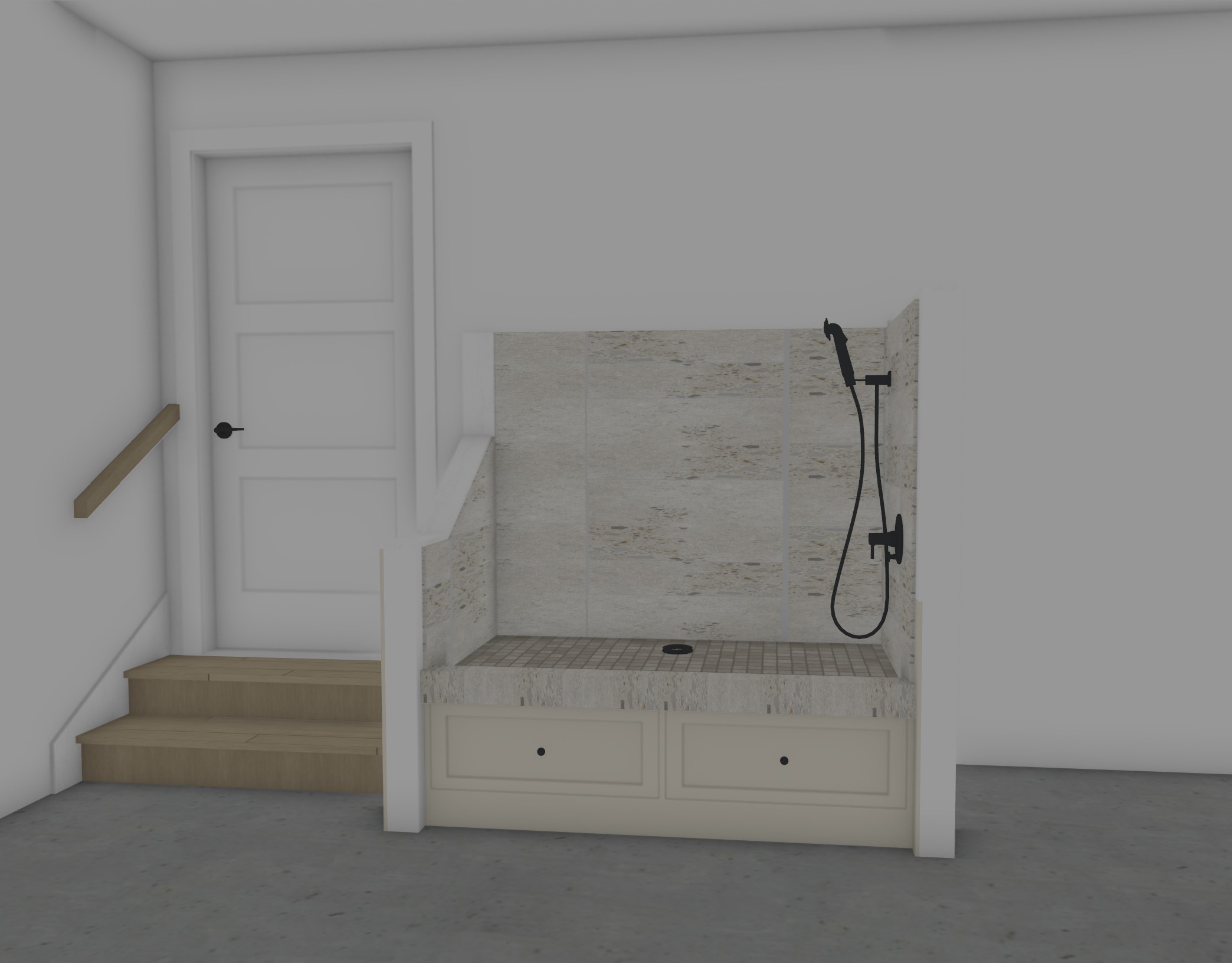 make this image a photograph of a doggie shower staged in a garage