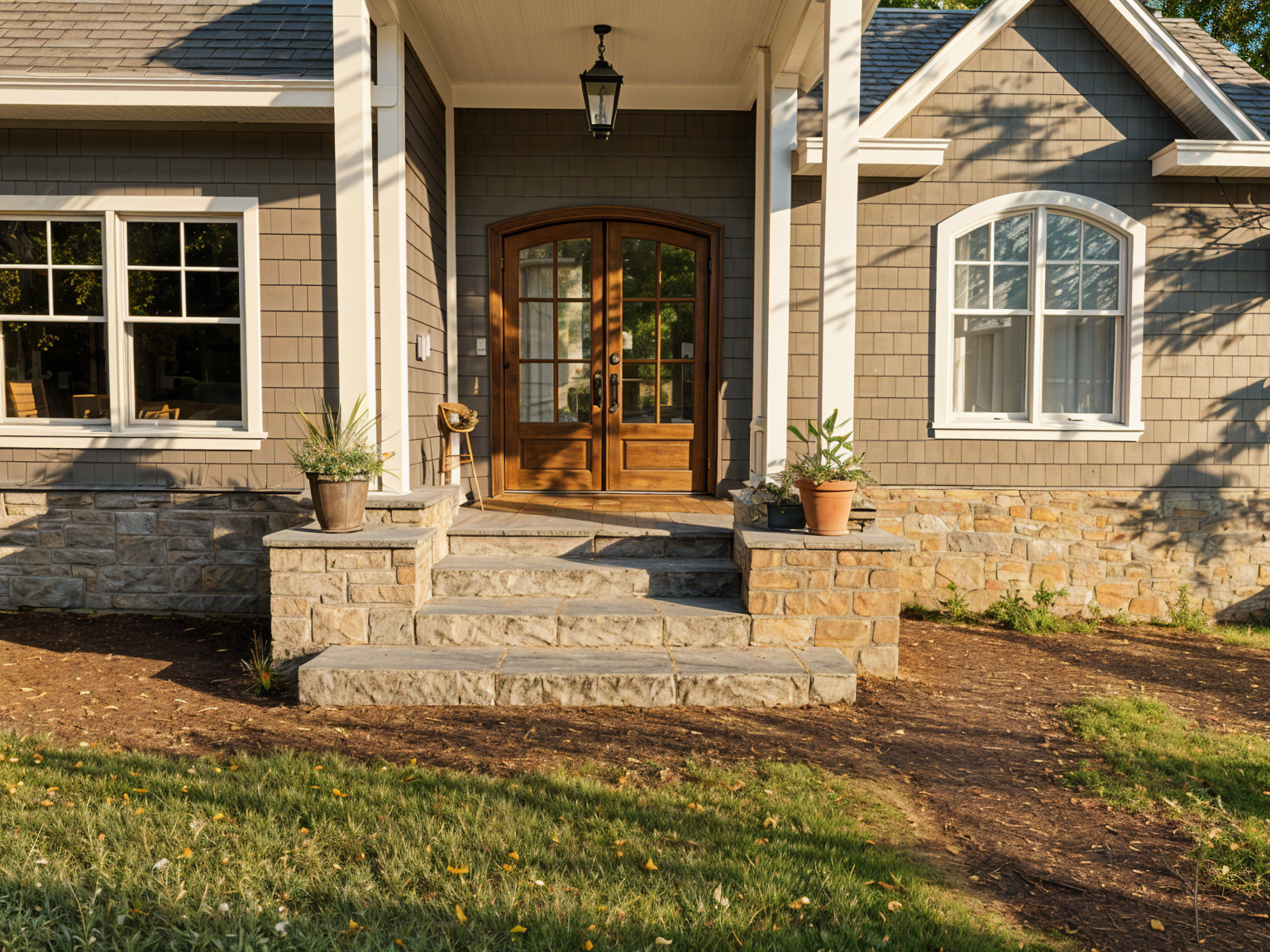remove the last bay window of the building make the canopy corner rounded make the columns half circular make the revolving doors smaller remove furniture from the entry plaza