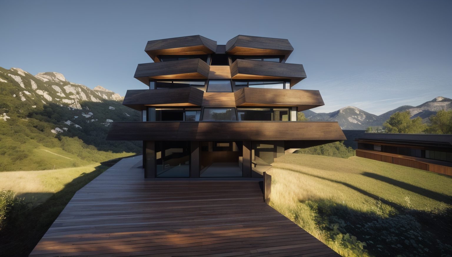 make a wood glass courtyard keep the same as the picture it its curved architecture