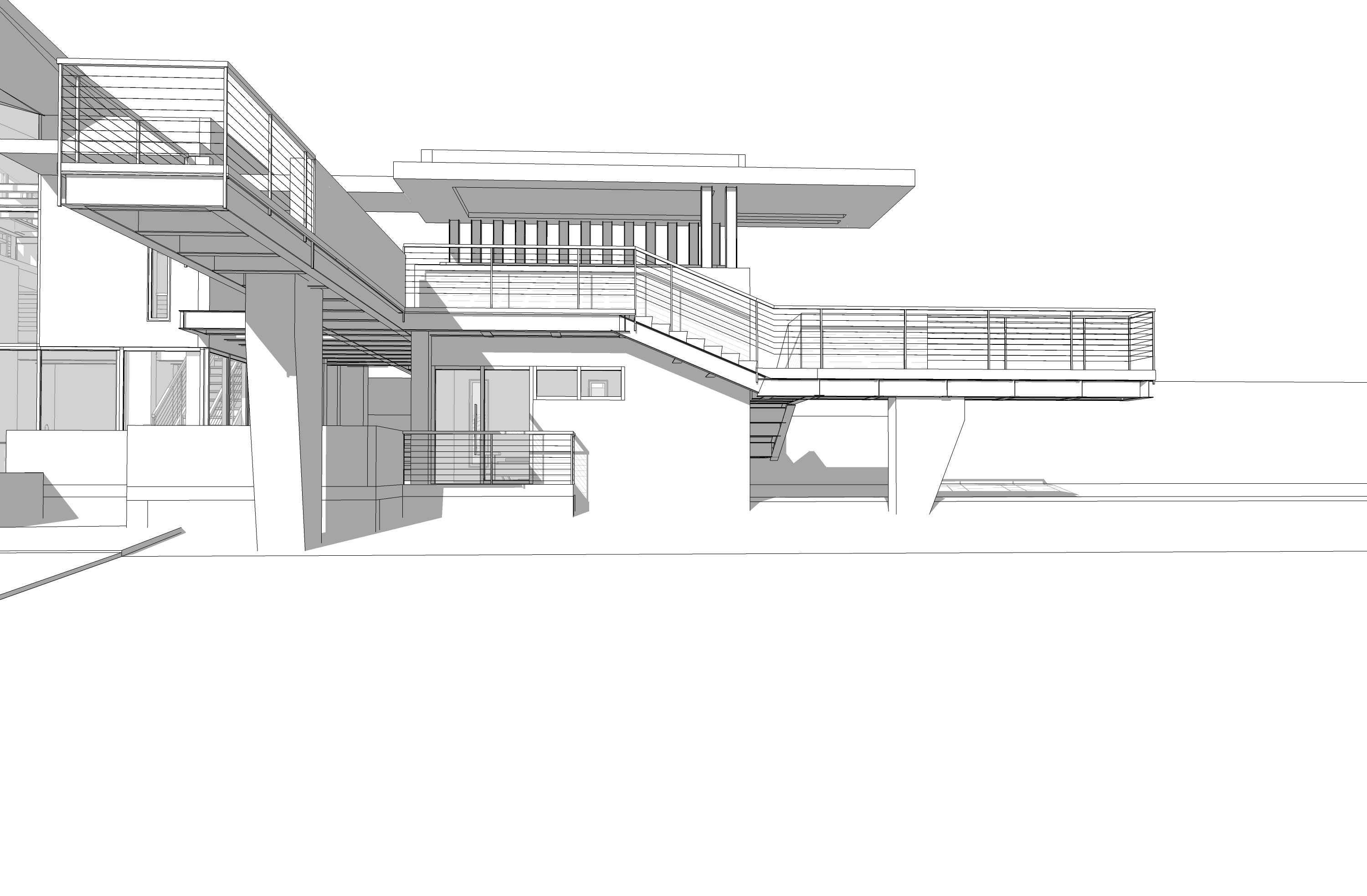 dark wiid shiplap siding with corten panels concrete accent walls tall grass in foreground trees in background sunlight on building face dusk fog