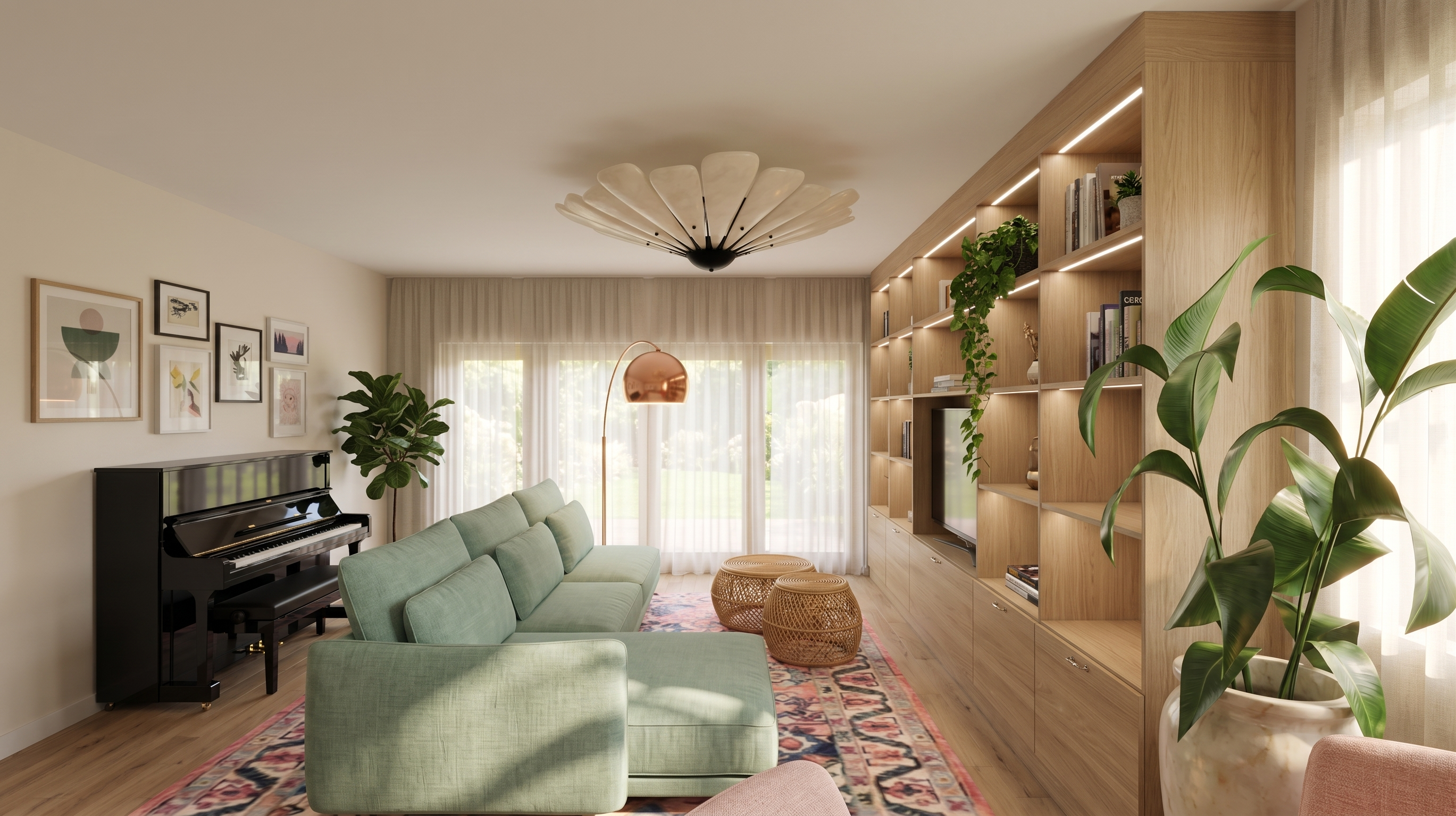 chambre de petite fille de 10 ans avec lit bureau et commode sol parquet longiligne brun claire mur cr pis fin plafond pl tre lisse voilage et rideau sur la fen tre