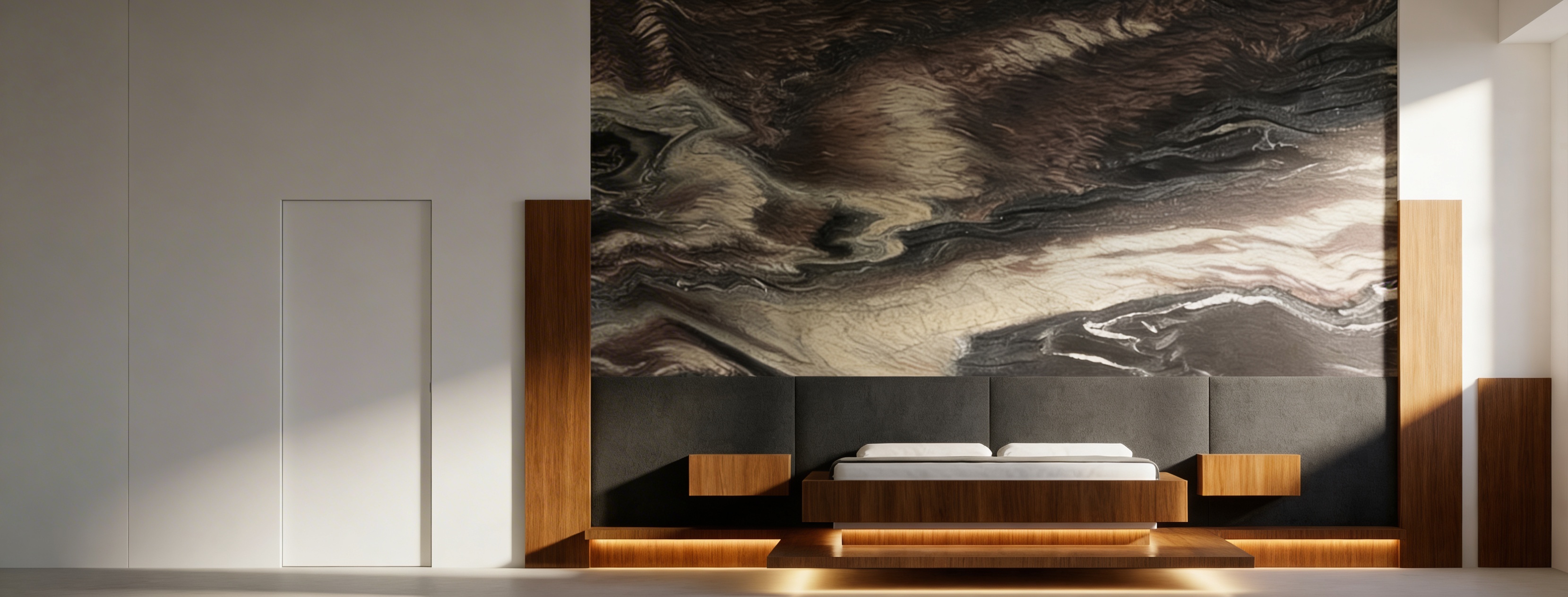 high end hotel spa interior in dark grey schist stone calm moody atmosphere with soft warm lighting from black ceiling spotlights a water filled pool clad in schist in front a bar like counter in split schist with a small sink three soft luxury lounge chairs nearby quiet atmospheric design minimalistic nordic style