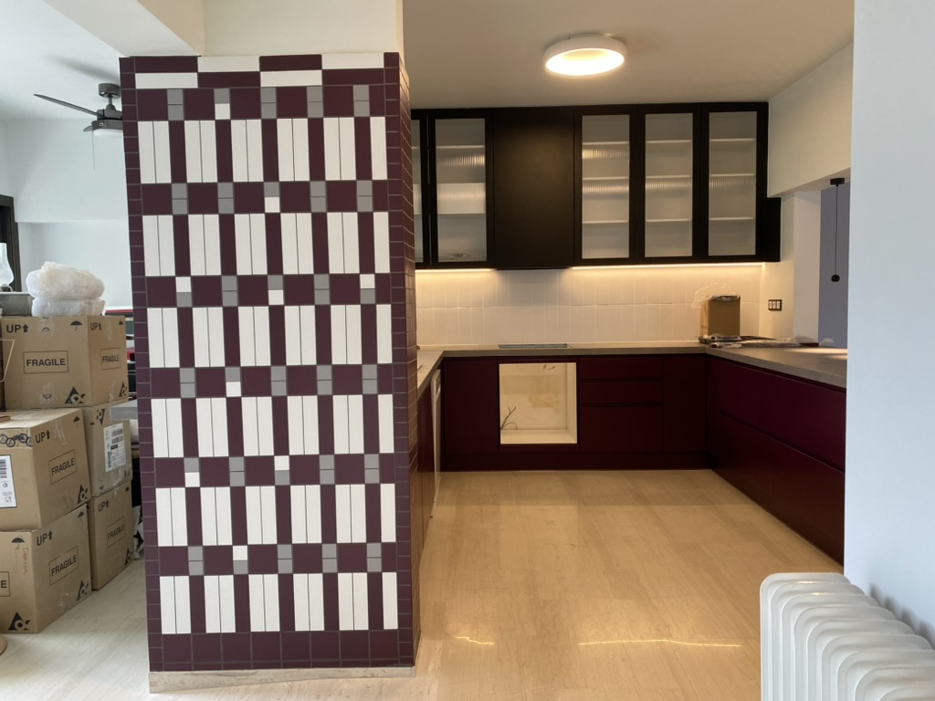 straighten the photo and stage it for kitchen without dining table make it more perspective