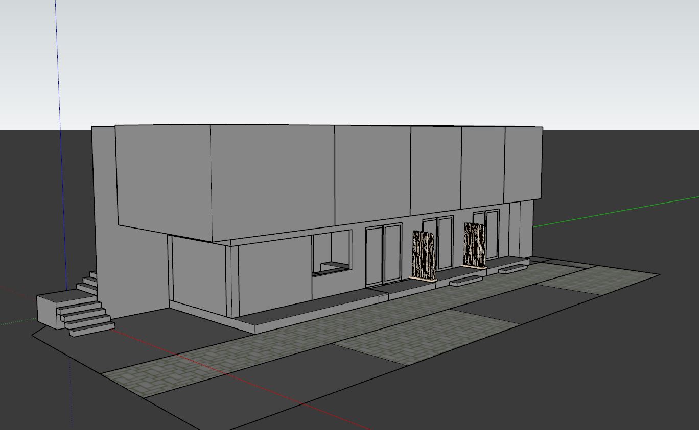 modern exterior shot can you make me a modern beach vibe motel like in bali using hut in roof and asphalt shingles use natural colors like brown white black for doors and windows architecture