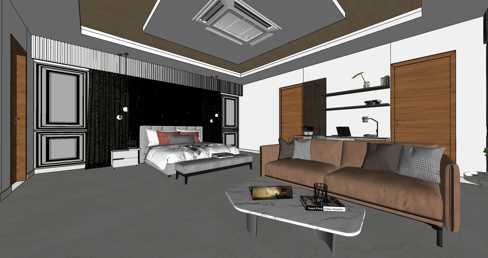 create a realistic render provide illumination for light fixture and cove light in the ceiling retain marble flooring