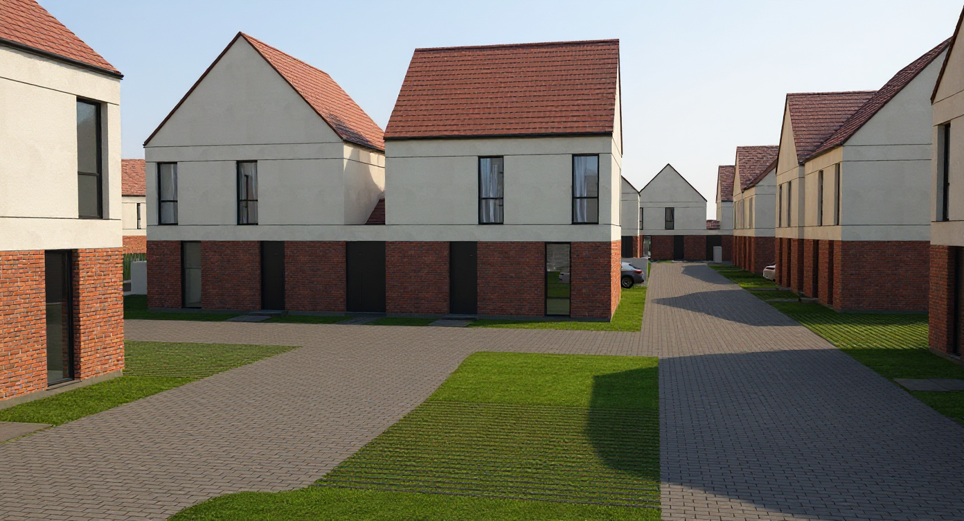 transform this empty living dining room into a high end photorealistic staged space with maximum selling appeal flooring replace terracotta tiles with microcement flooring in warm light gray greige tone ral 7044 or similar seamless matte finish with subtle texture variation modern and sophisticated appearance layout furniture critical spatial distribution dining area positioned close to kitchen window square dining table 90x90cm or 100x100cm in natural oak walnut placed near the kitchen pass through window creating intimate dining zone 4 upholstered chairs in soft taupe warm beige fabric one on each side statement pendant light centered above table organic sculptural fixture rattan wicker leaf design or wire mesh sphere in natural black finish warm 2700k glow living area right wall modern l shaped or 3 seater sofa in boucl or textured linen cream warm beige positioned with clear unobstructed view to tv wall textured cushions in terracotta rust and neutral tones coffee table center of living area low rectangular coffee table 120x60cm in natural oak with black metal legs positioned between sofa and tv wall creating proper conversational distance and complete tv viewing area tv wall left wall highly decorated wall mounted 55 tv floating console beneath 180cm in natural walnut oak with warm led strip lighting underneath wall decor 2 large framed botanical prints 60x80cm each flanking or above tv in natural wood frames pressed leaves ferns in warm sepia tones floating shelf on one side with styled objects ceramic vases small sculptures books optional vertical wood slat accent panel behind tv for texture kitchen window area style counter visible through window ceramic bowl with fruit small potted herbs coffeepot lighting strategy statement pendant over dining table key focal point recessed ceiling spots warm 2700k creating ambient wash led strip under tv console soft glow table lamp on side table near sofa warm cream shade natural daylight from kitchen window overall layered warm sophisticated lighting creating depth styling decor square rectangular jute rug 160x160cm or 180x180cm centered under dining table larger rectangular rug 200x300cm defining living area in warm geometric tribal pattern large fiddle leaf fig or monstera in decorative pot corner near sofa eucalyptus branches in tall ceramic vase on dining table coffee table styling stacked books decorative tray small plant woven baskets textured throws color palette warm sophisticated neutrals cream warm beige taupe natural oak walnut terracotta accents matte black details greige tones atmosphere scandinavian mediterranean luxury warm inviting perfectly balanced zones aspirational lifestyle imagery professional real estate photography with natural depth perfect composition lifestyle appeal technical photorealistic 8k rendering natural lighting with accurate shadows hdr quality architectural photography standards