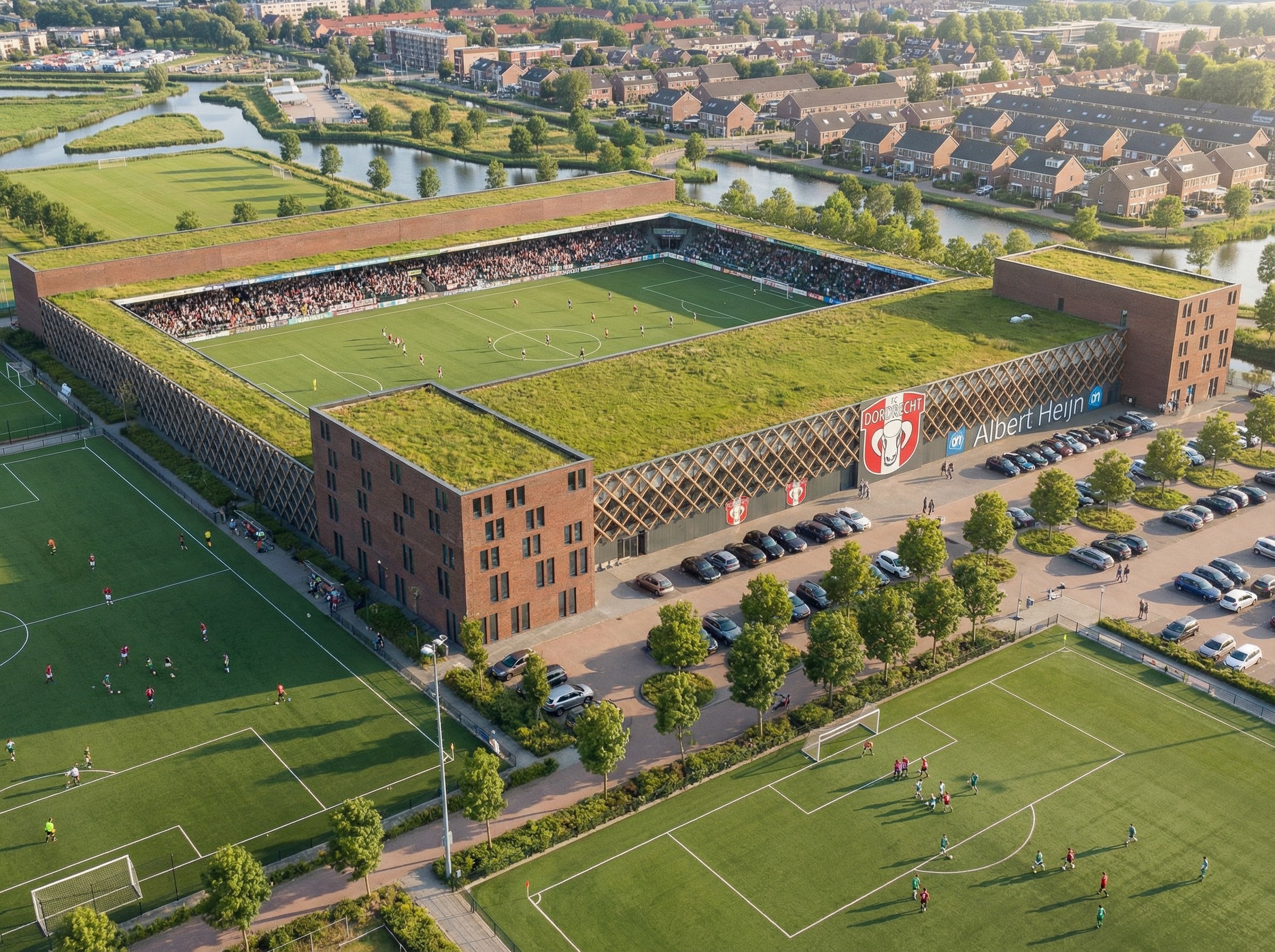add the text samen nieuwe energie cre ren to the left side of the building on the wooden outside facade make this text white keep the rest of the picture the same