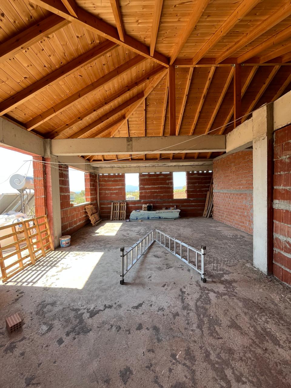 clean this up change this into an modern living room with fireplace keep the windows and the wall same