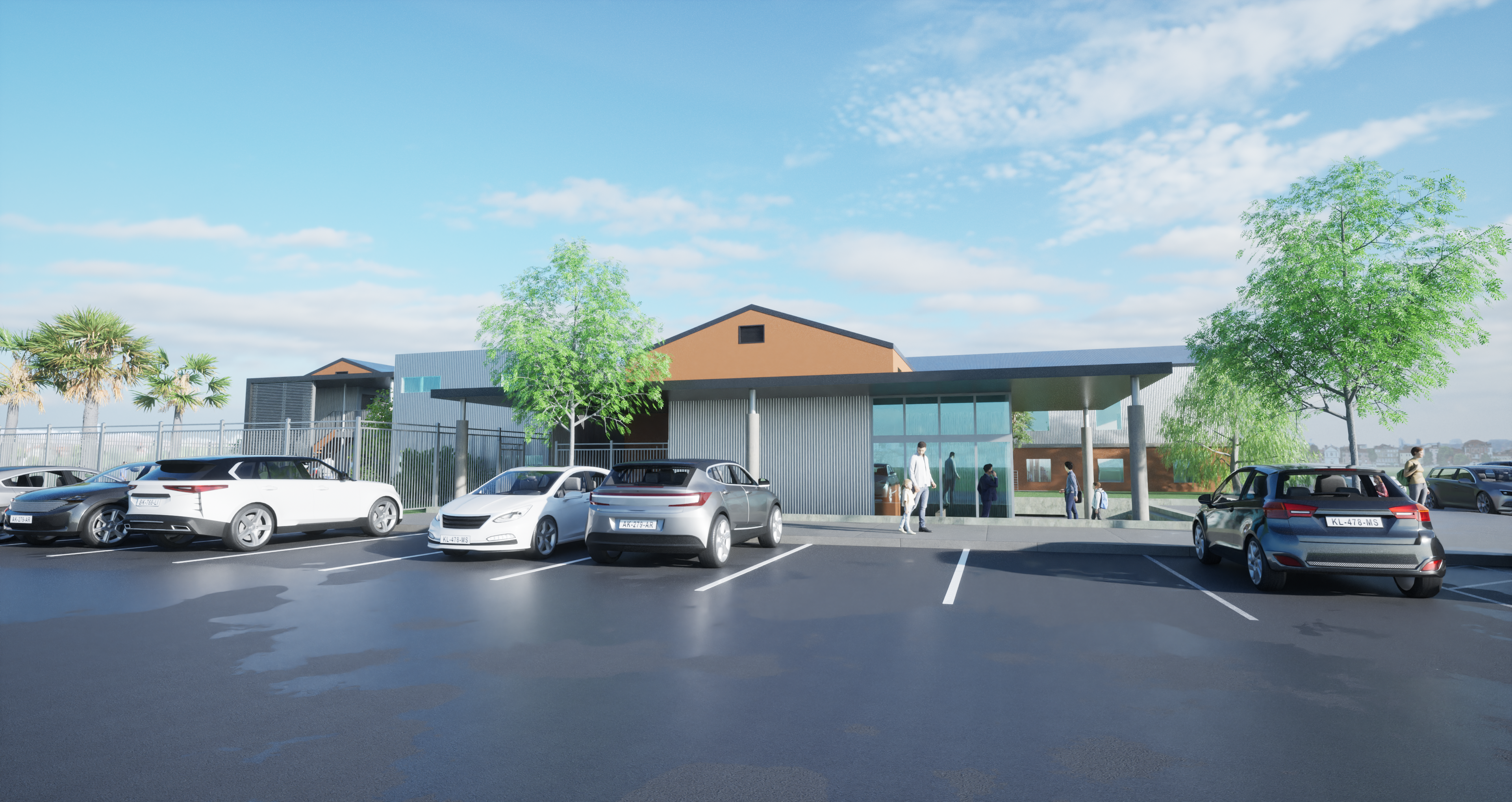 change all trees to oak trees and california native palm trees sunny california weather