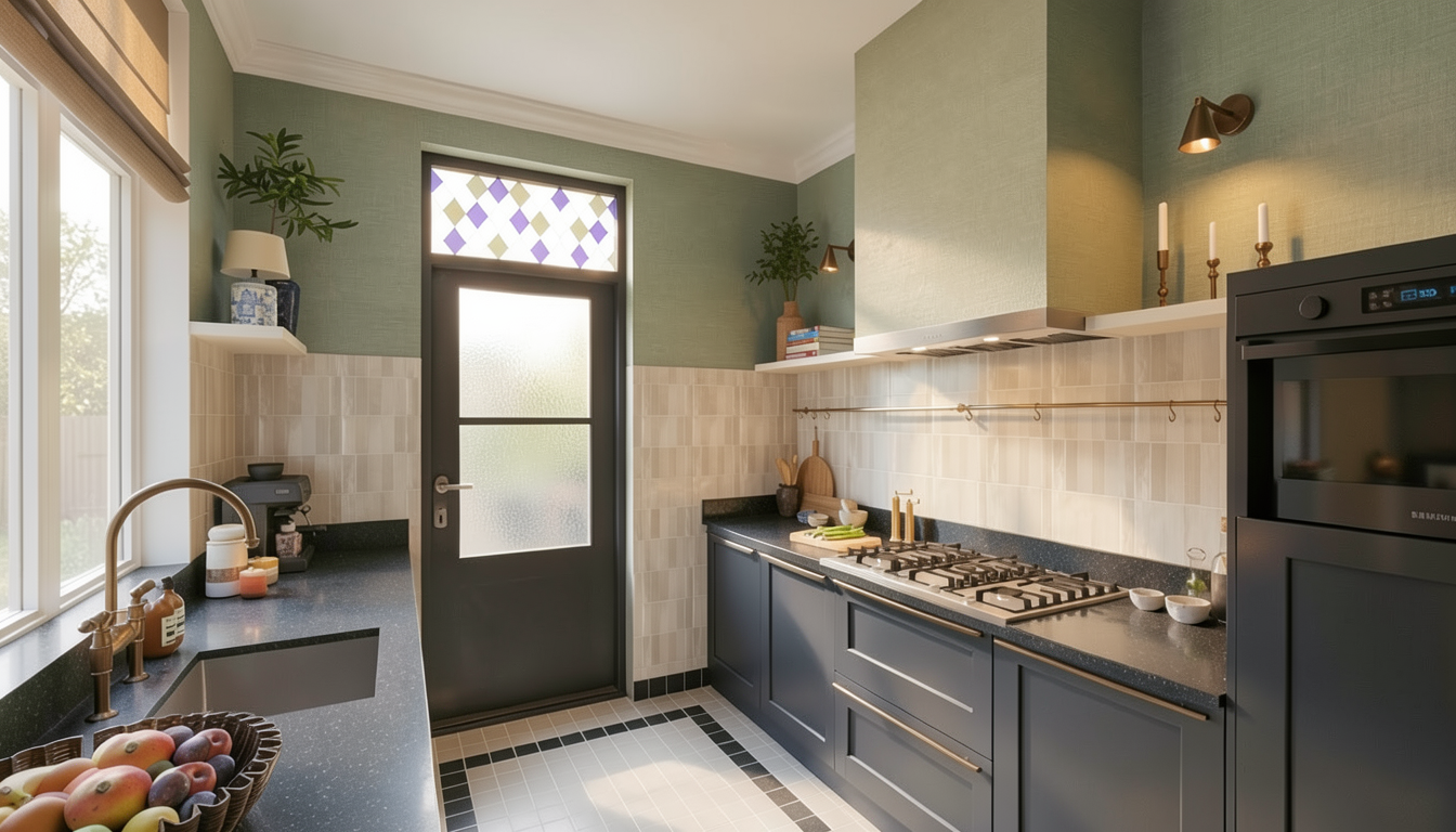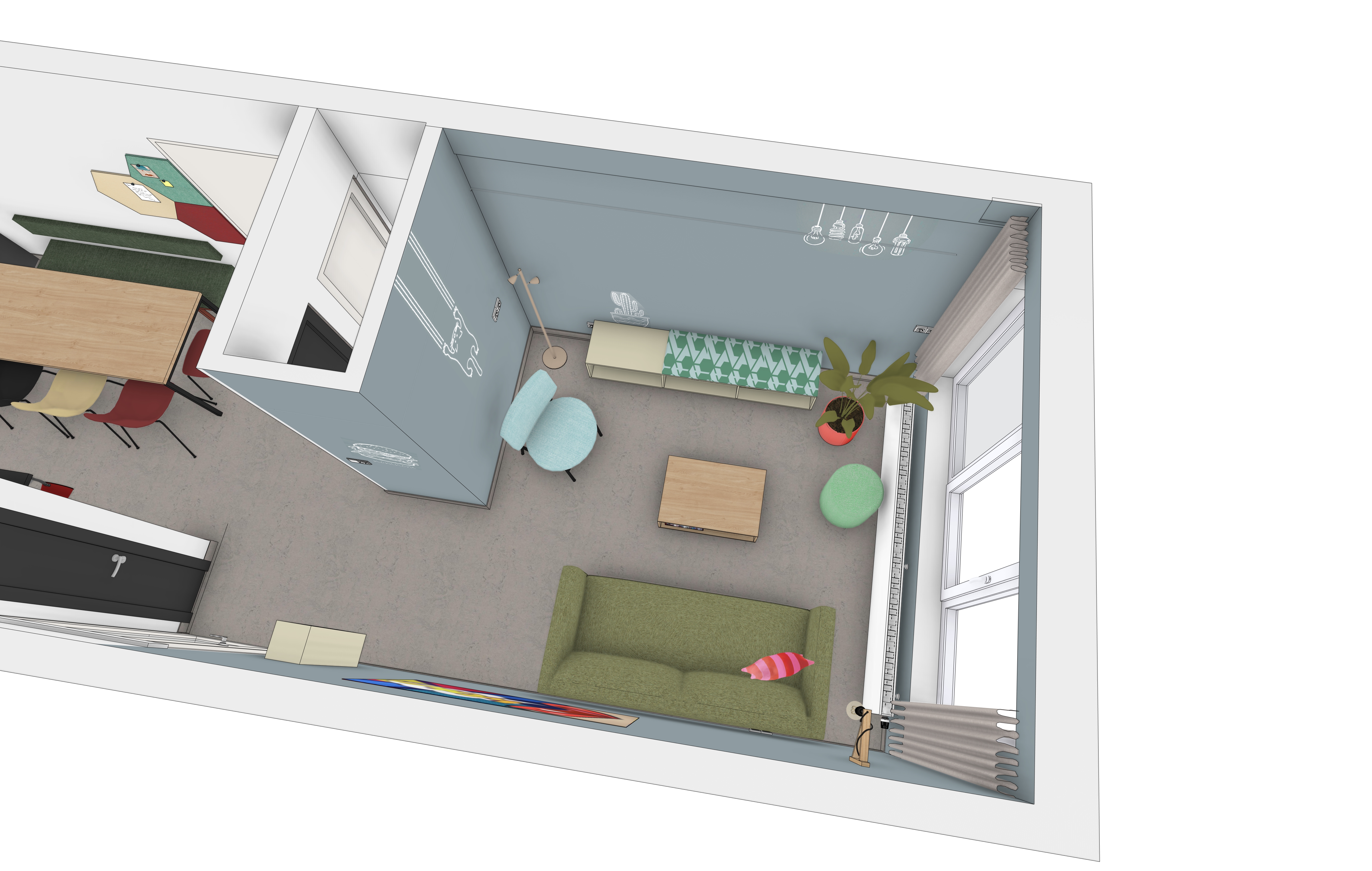 cabinets are sage green from egger table tops are h3170 from egger natural daylight change nothing else maintain all colors