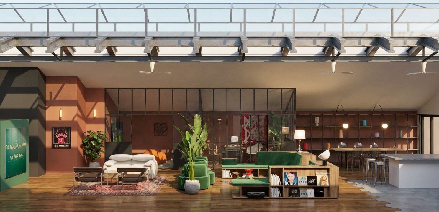transform this sketch up generated interior image into a high quality photorealistic render maintain the exact layout and furniture arrangement preserving the size texture and angle of visual emphasize the natural textures of wood rattan and layered fabrics capturing their tactile qualities enhance the lighting to create a soft ambient daylight atmosphere with sunlight gently filtering through the windows and casting realistic shadows and highlights improve the material reflections and add micro imperfections such as subtle fabric creases natural wood grain and detailed woven textures to increase authenticity all surfaces should respond to light with realistic bounce lighting soft gloss levels and nuanced texture variation