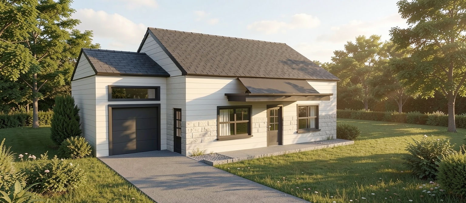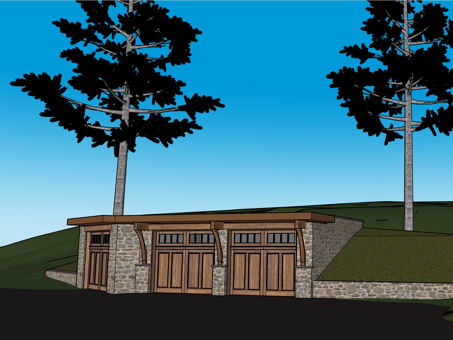 exterior shot varied light and dark woods mountain modern materials winter scene in dense pine forest preserve grade architecture add a small studio apartment