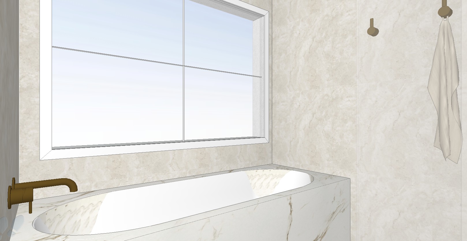 add natural light into the space add bathroom decor and show an entire person sitting on the edge of the bath touching the water