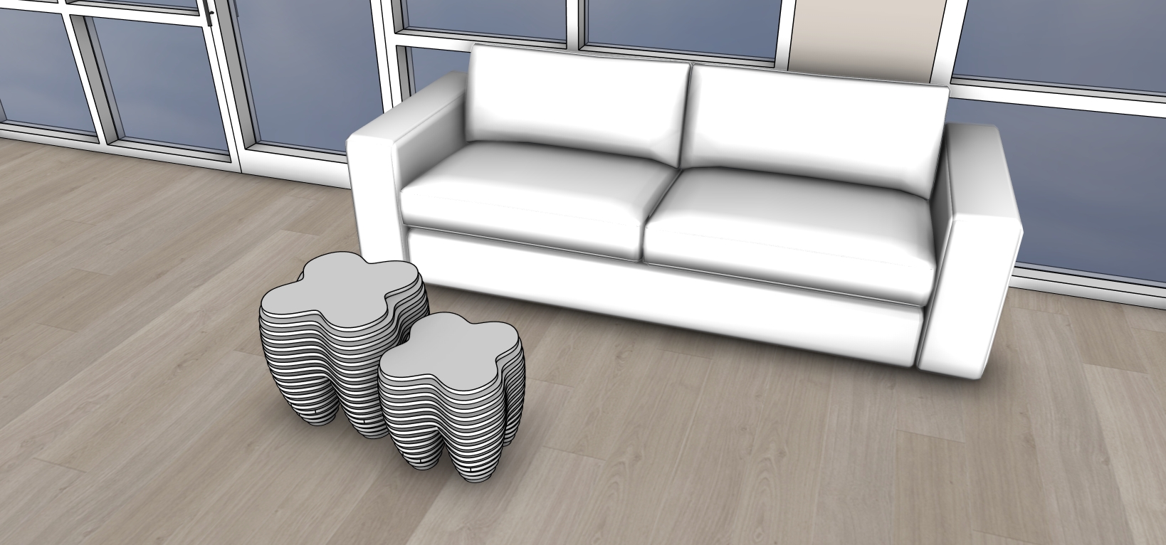 edit the image to represent a modern dental clinic reception with subtle spa vibes keep the sofa and the two tooth shaped side tables as the main focal elements in the center one larger one smaller transform the surrounding space into a calm refined dental spa environment use white and soft neutral tones with warm diffused lighting that feels natural and relaxing clean walls elegant flooring and subtle high quality textures minimal decor balanced composition and realistic materials not futuristic modern serene professional and welcoming high end interior design aesthetic suitable for a professional catalog or brand presentation