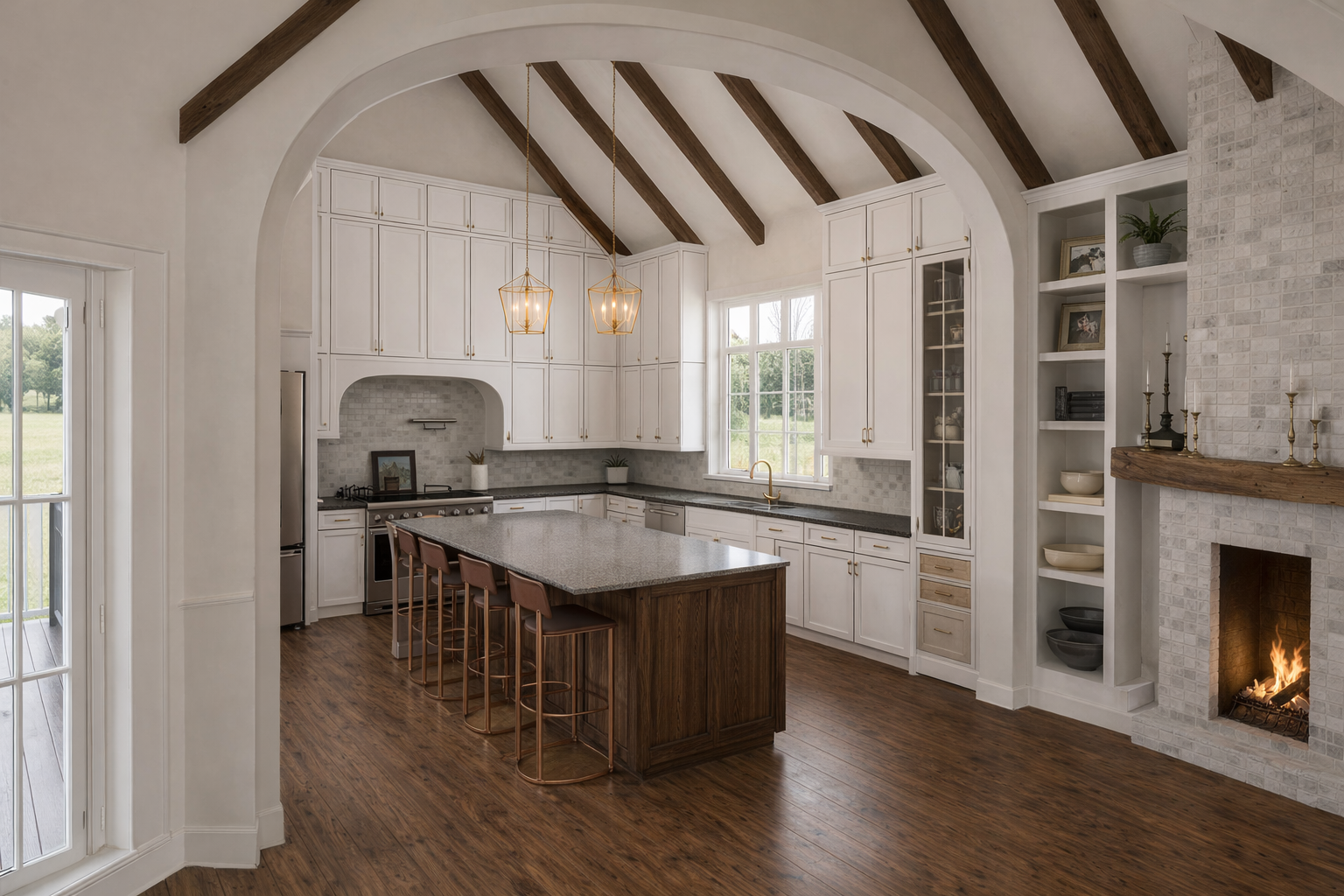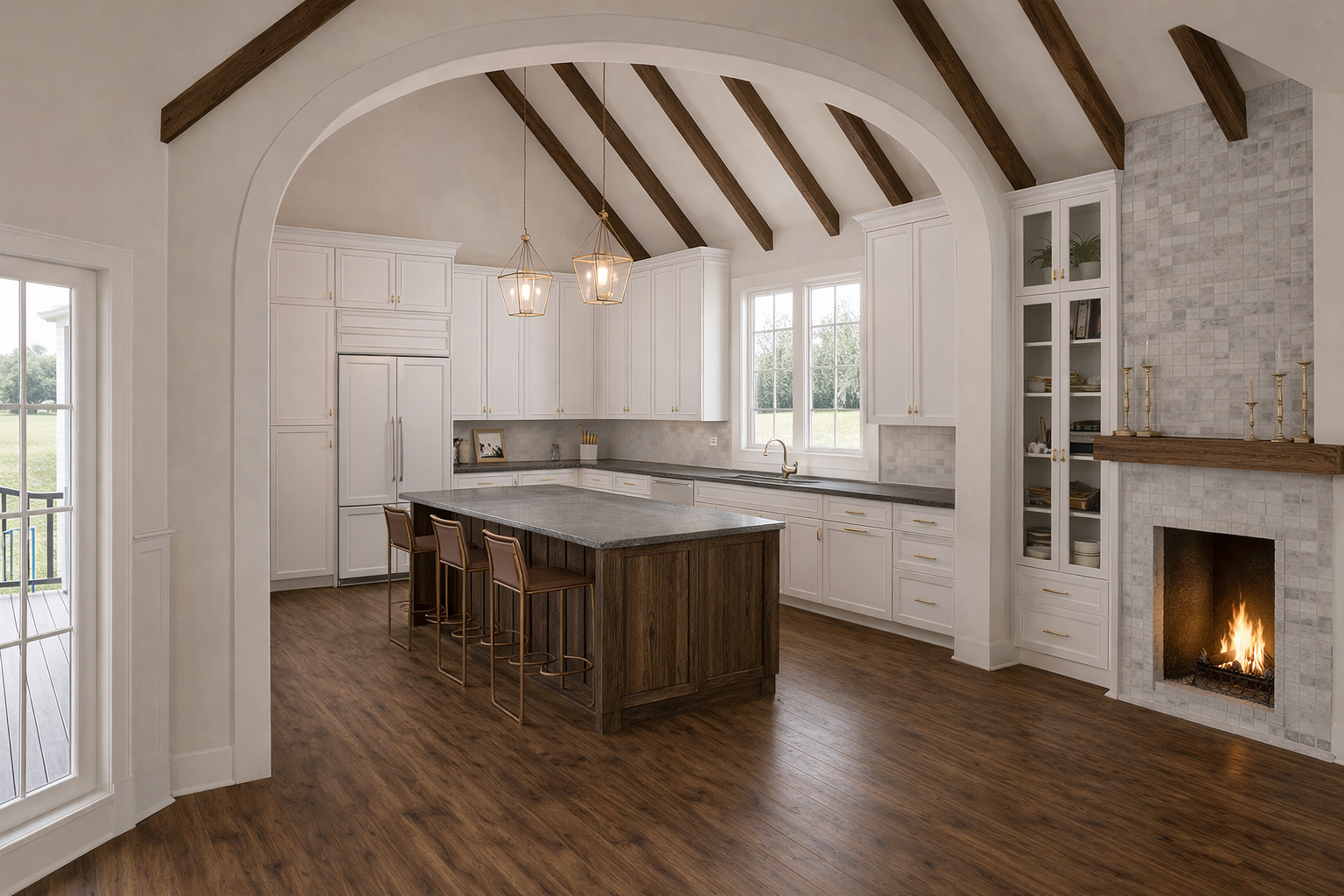 reimagine this interior in the style of a luxury private club lounge preserve the existing room layout and viewpoint realistic lighting realistic materials upscale clubhouse atmosphere professionally photographed interior design rendering do not change the camera angle room proportions or main architectural shell avoid people clutter overly modern minimalism bright colored accents cheap materials distorted furniture extra windows exaggerated beam sizes or cartoonish lighting