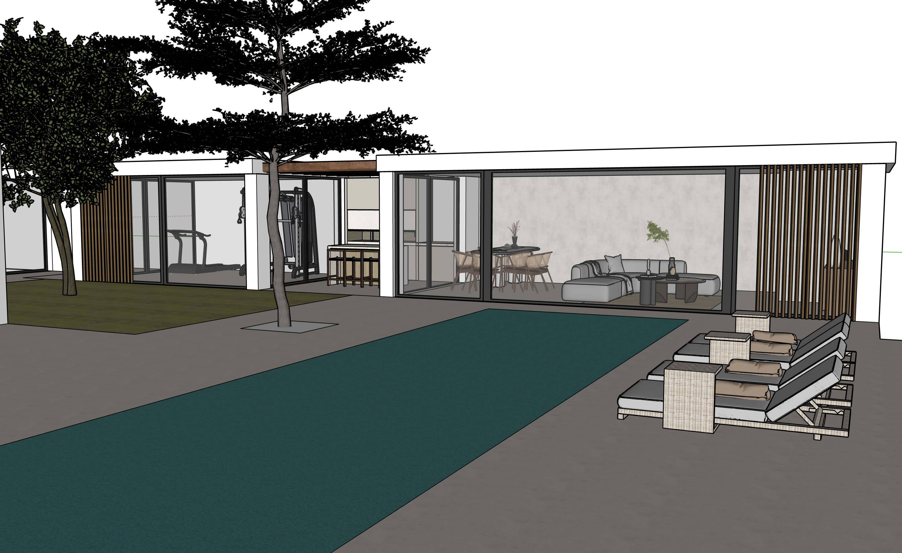mejorar iluminaci n con sombras naturales hacer dic soleado el c sped verde de la izquierda llenarlo de toda plantaci n en garras estepas y lavandas la parte celeste es piscina y llega hasta el final de la foto no es plantaci n
