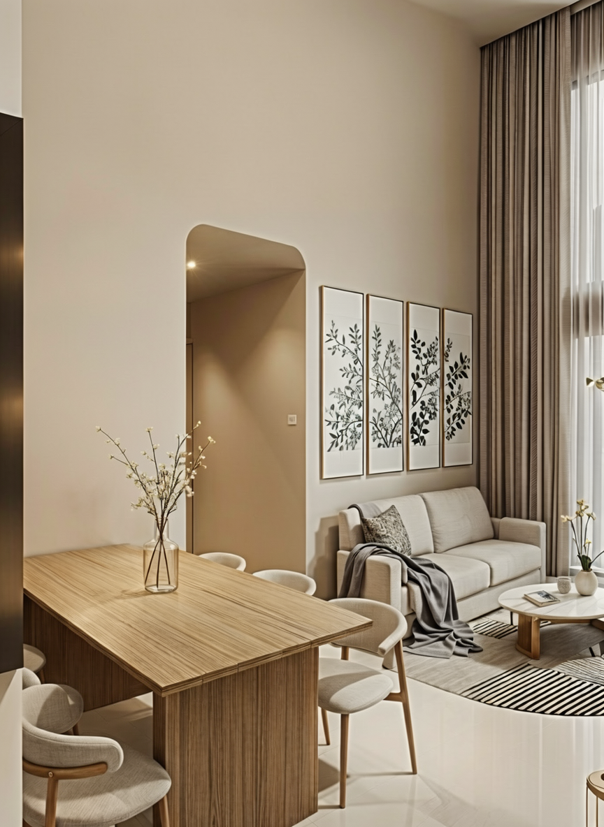 input image from the reference image uploaded to the wall on the left place image flush to the edge of the wall place image from the bottom to about height 1800mm