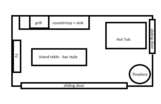enclosed outdoor kitchen hot tub fireplace rustic appearance