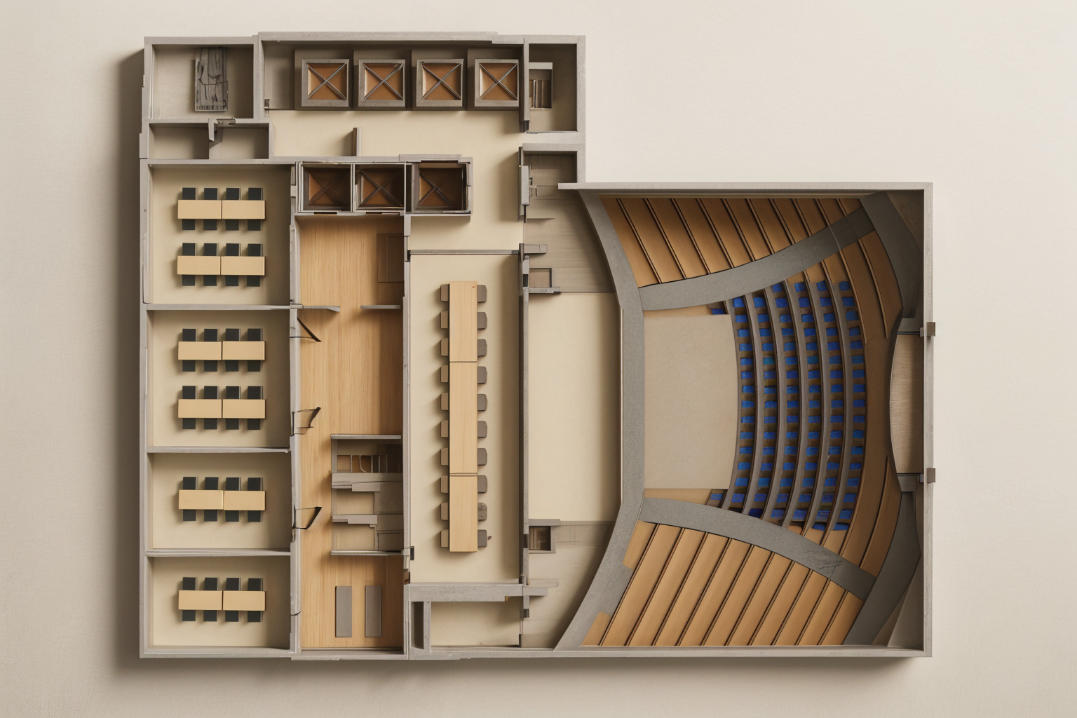 zaha hadid aerial shot colored floor plan with realistic texture and furniture also add natural illumination from windows add realistic furniture with contemporary style architecture