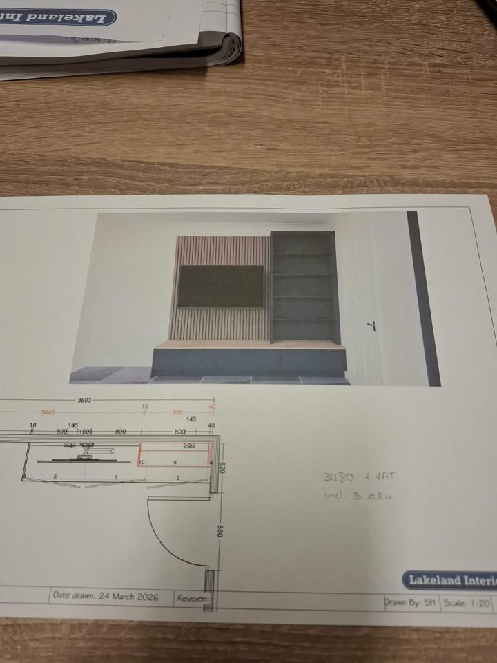 create real image slatted panels in light oak colour tv unit is ikea besta 3600mm in white and shelving unit white