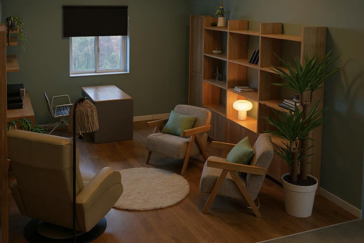 convert this floor plan into a modern isometric 3d view of a office show the space from an elevated angle with furniture walls and details visible use the same furniture as shows on the plan do not change the orientation of the floorplan