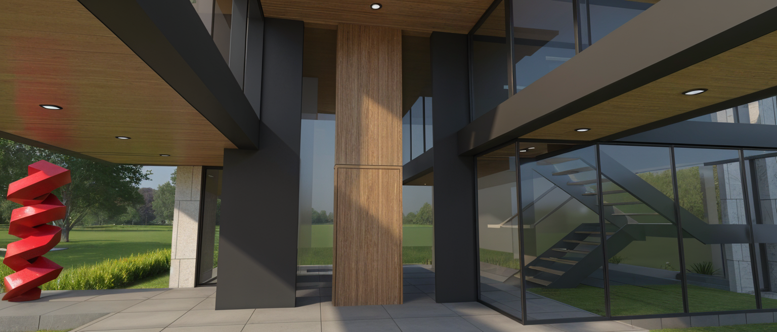 minimalism exterior shot accent weaving back chair wooden legs wire brush finish upholstered seat architecture
