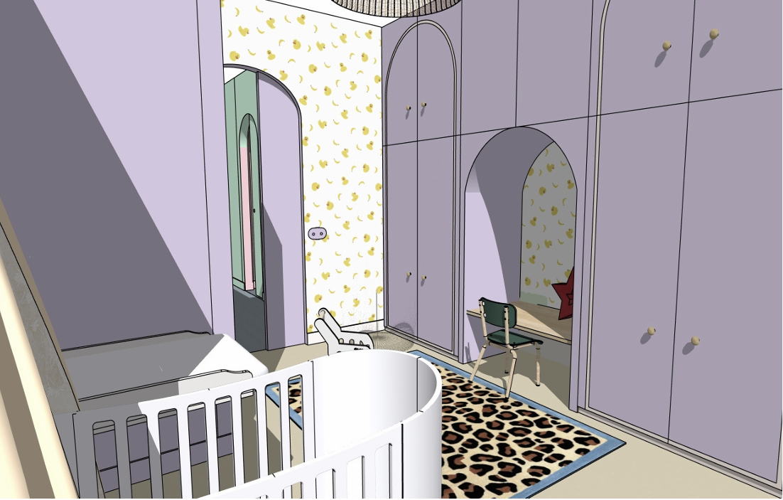 colorful and original children s room light switch painted purple the same color as the closet leopard rug on the floor closet painted with matte paint rattan pendant light wooden crib painted white