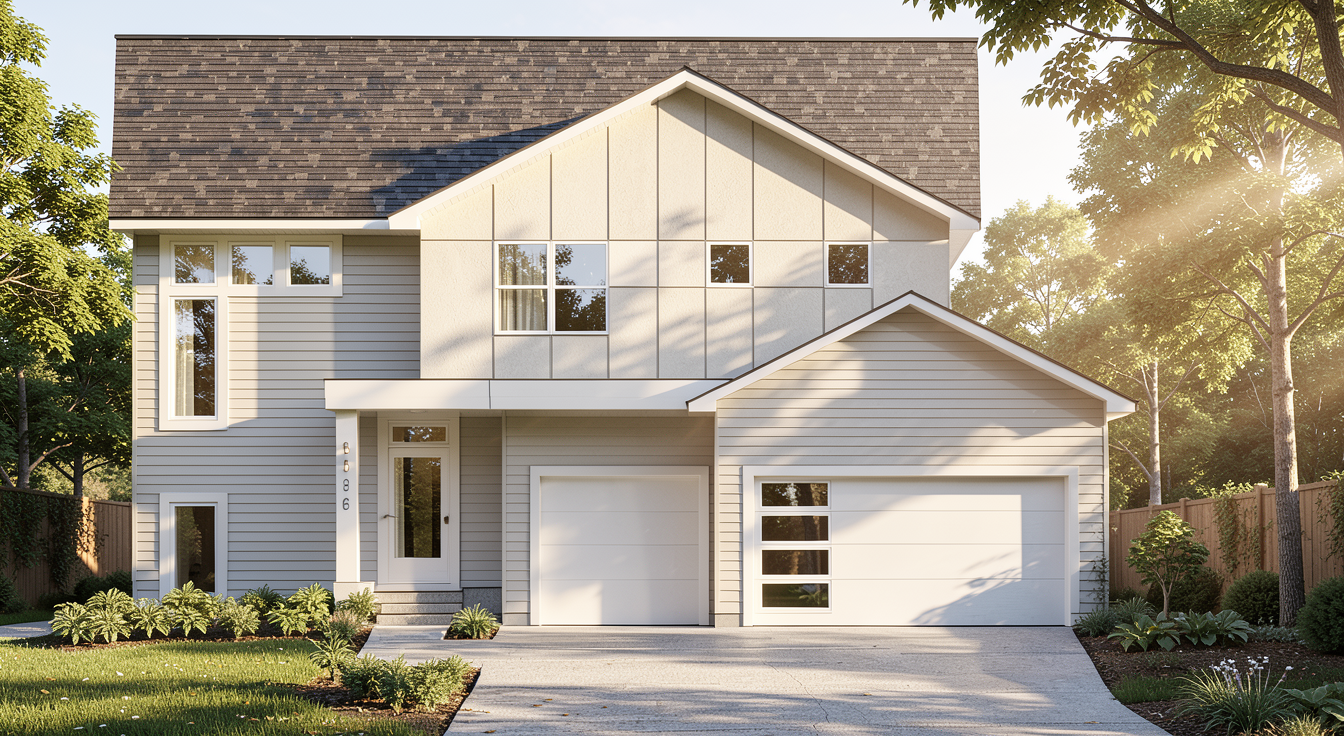 keep the geometry clear morning sunlight at 10 a m creates crisp geometric shadows on the wall surfaces emphasizing material contrast the light should be smooth the sky is clear blue without clouds giving the image strong depth replace the white wall in the backround with a small hedge overall not so glosy with less reflections
