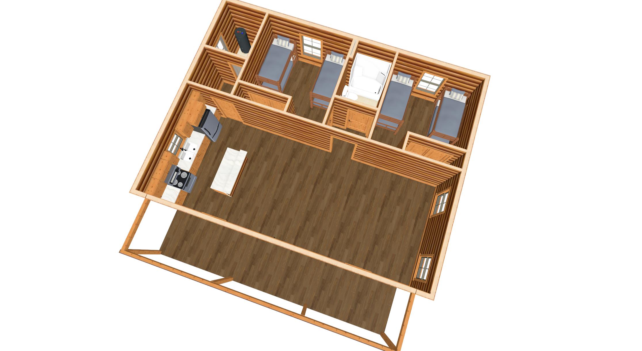 create a view looking down into the house with a state parl background