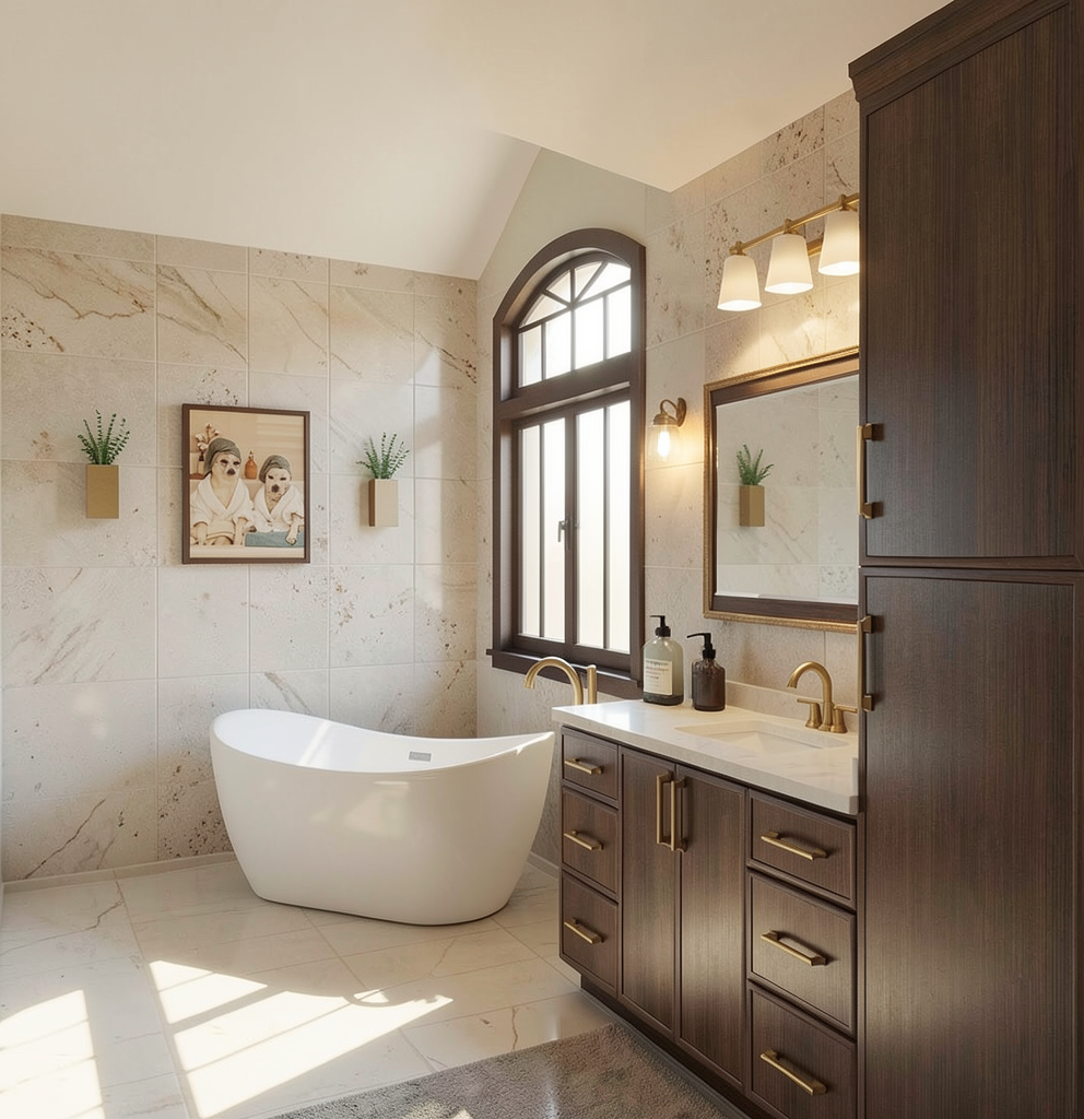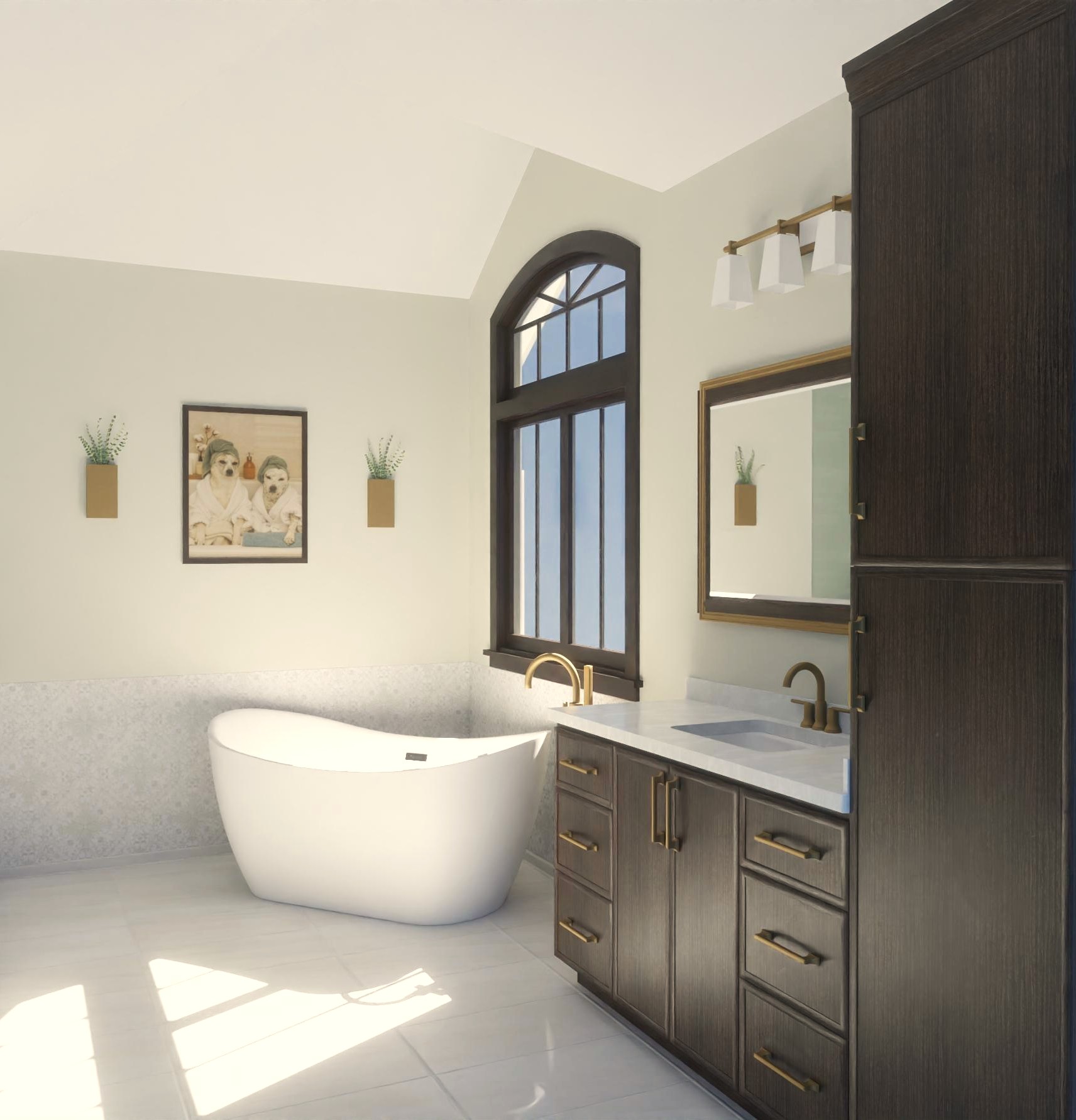 decorate this bathroom without changing any tile or finishes keep the wall tile the same pattern