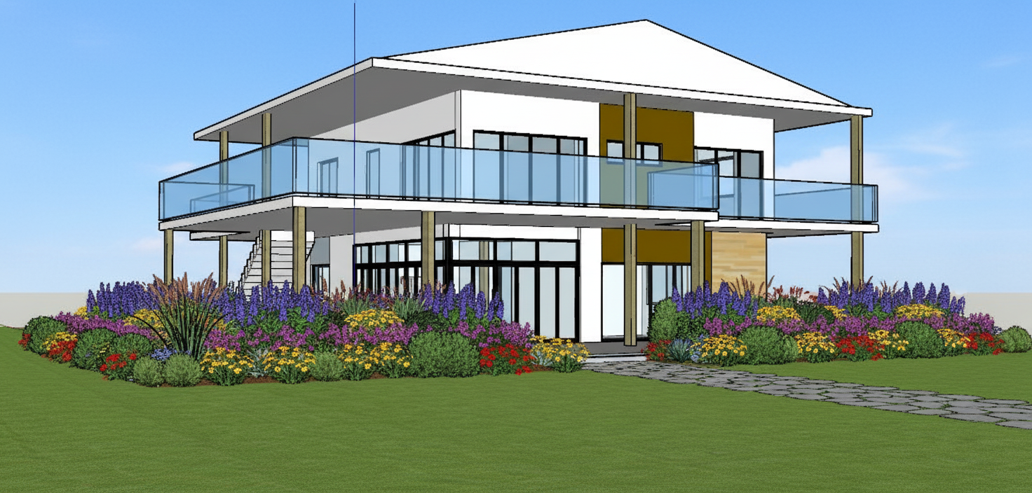 exterior shot make a realistic render of a modern asian vacation house